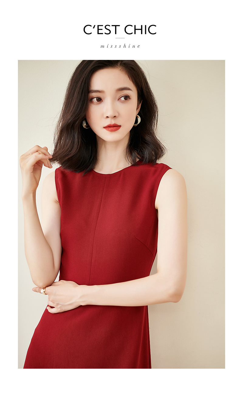 剩S/M 米思阳夏季新款知性优雅醋酸背心裙修身显瘦无袖连衣裙
