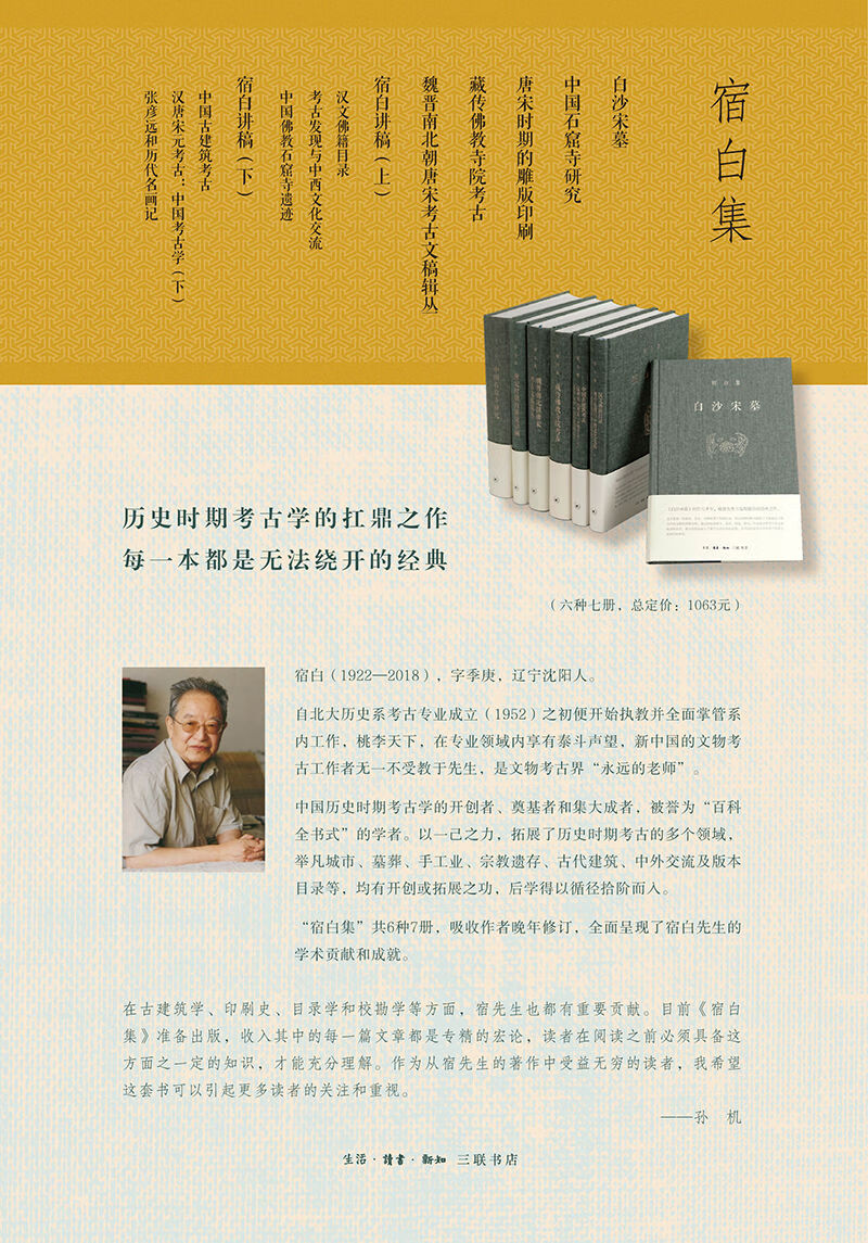 “宿白集”共6种7册,收录了作者全部出版过的著作,并吸收了晚年的修订,全面呈现了宿白先生的学术贡献和成就。