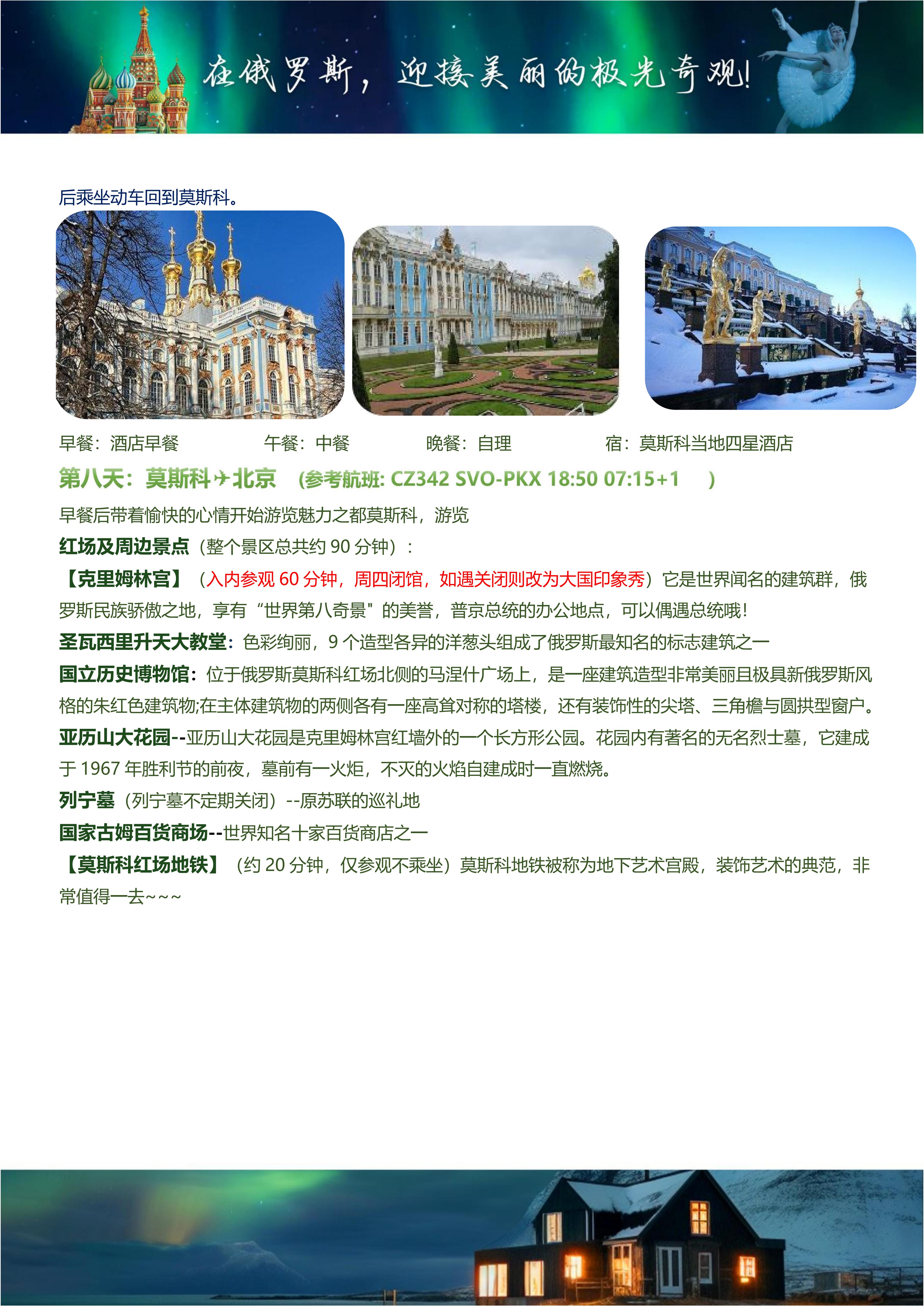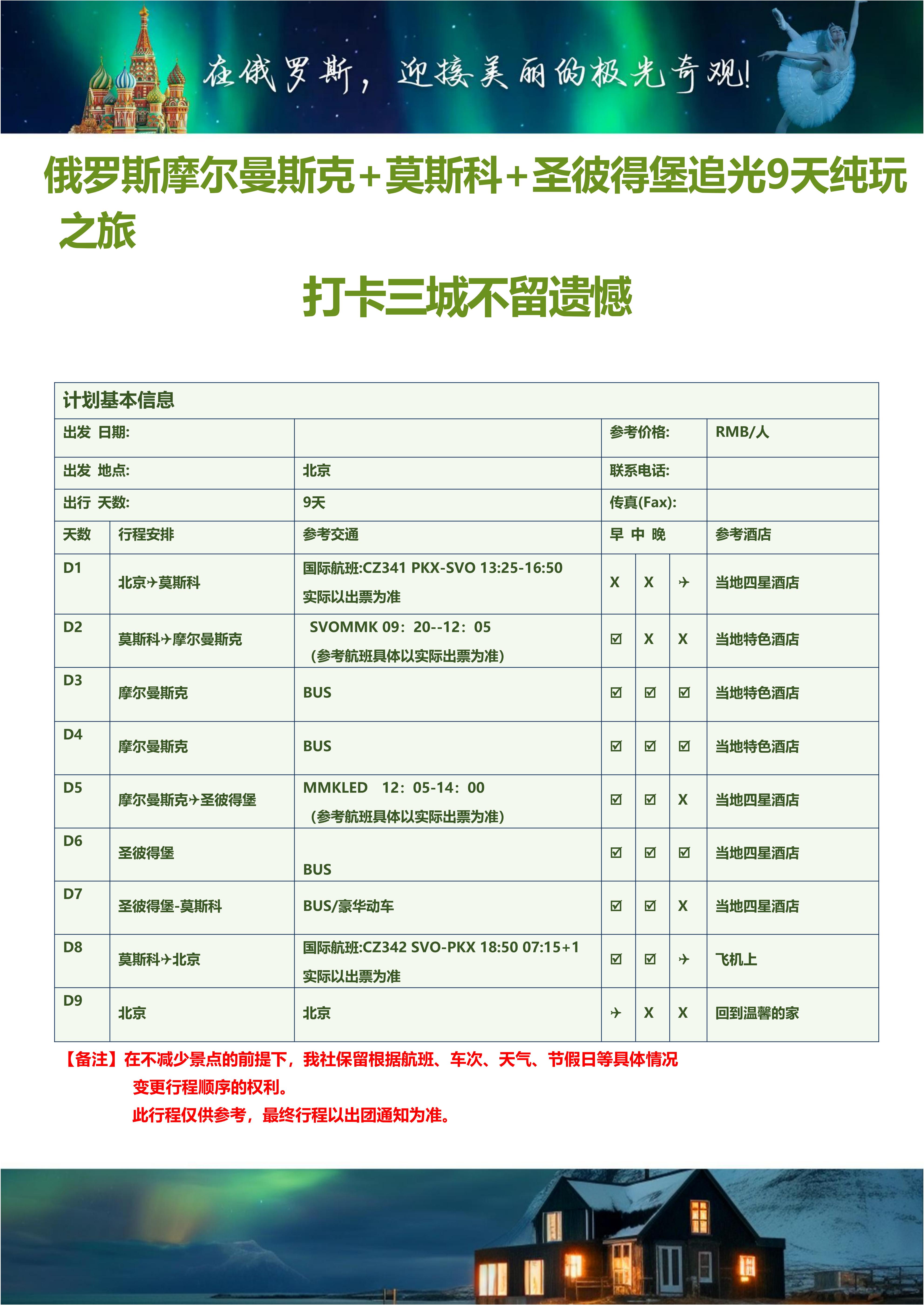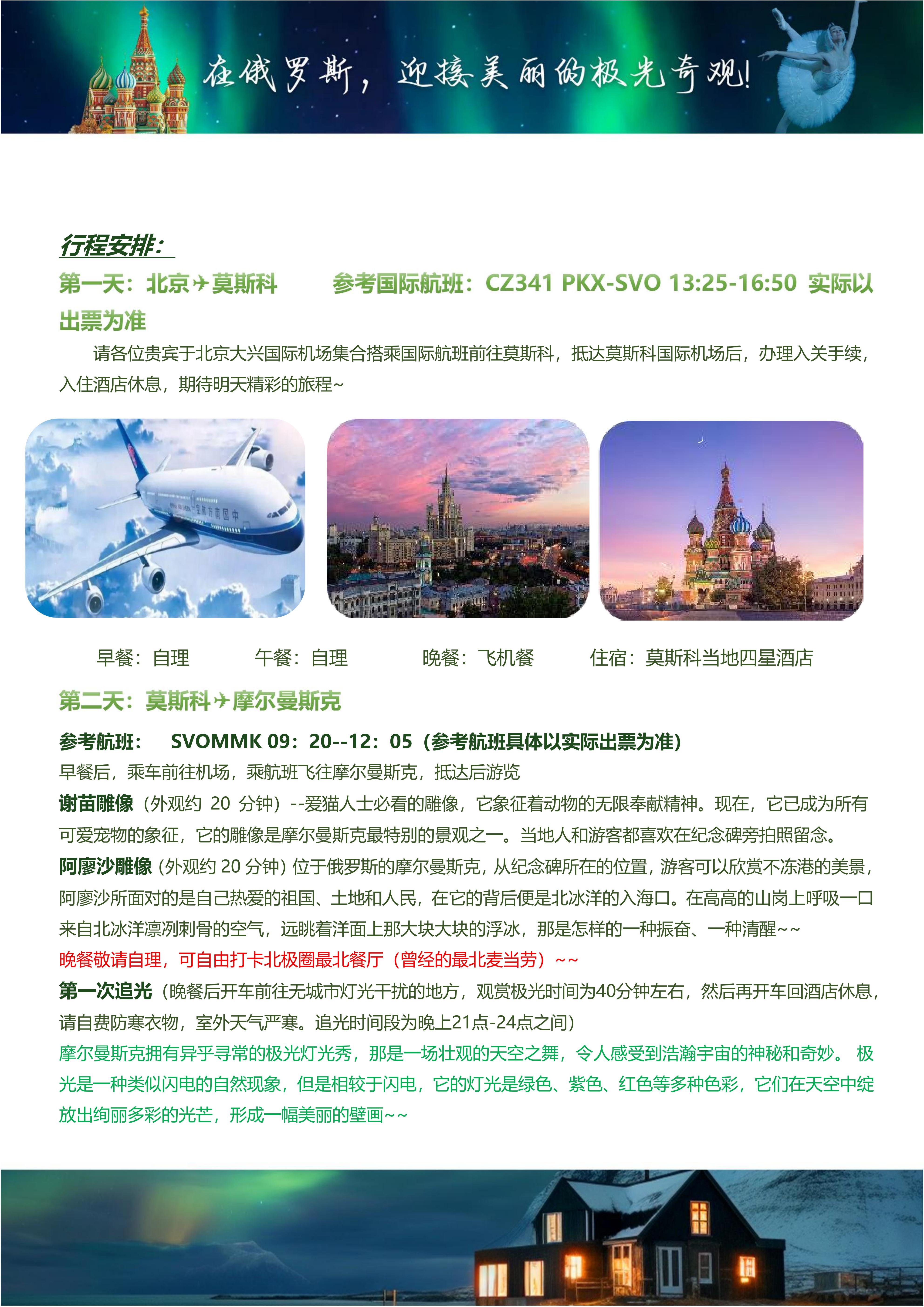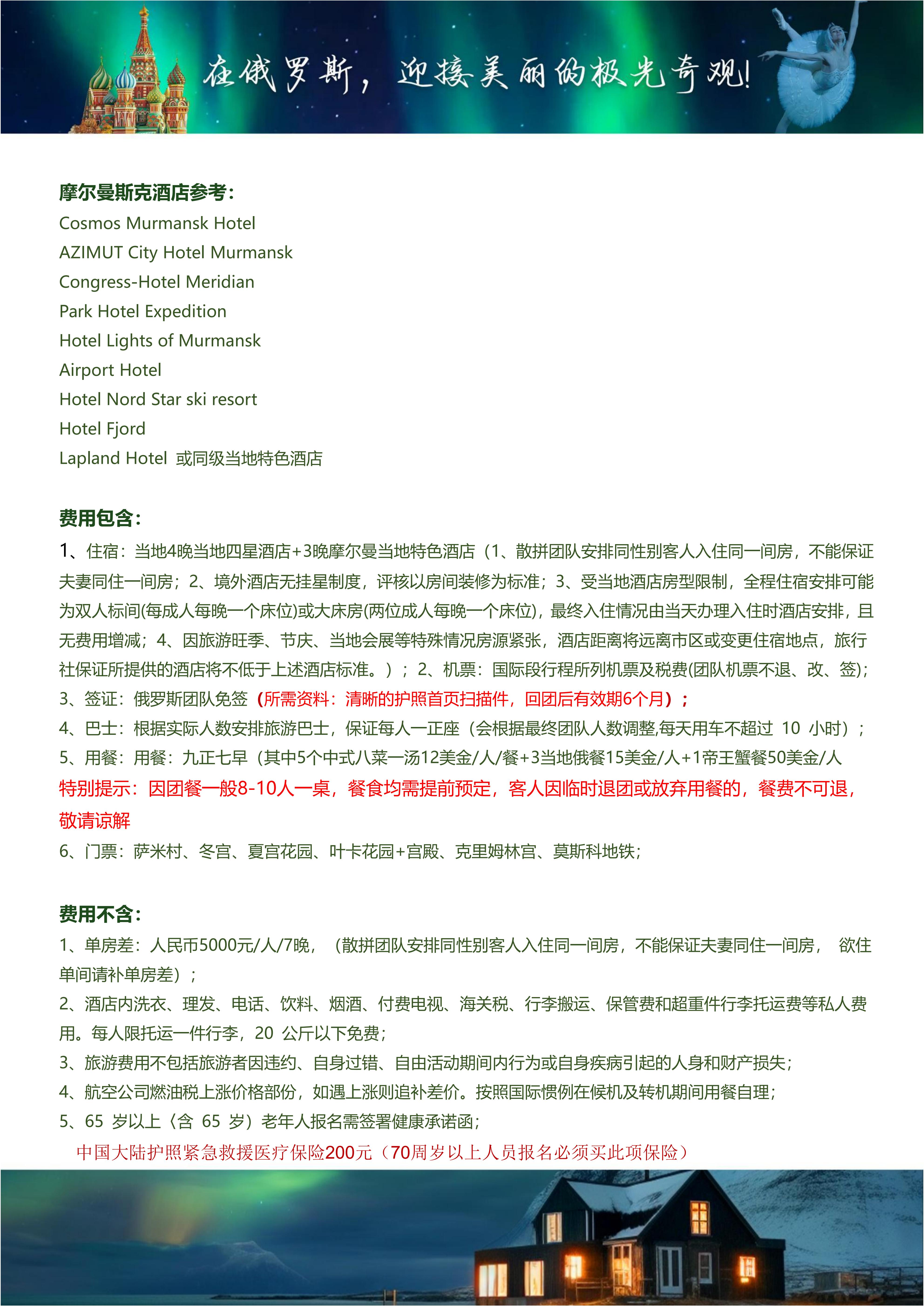 【摩尔曼斯克】纯玩追光之旅9天三城