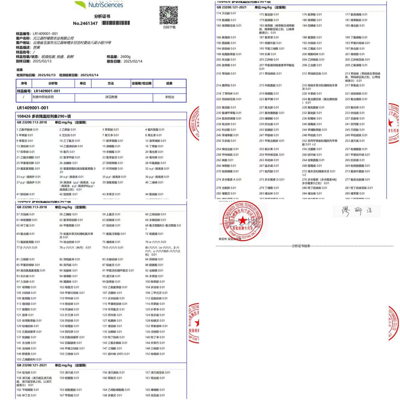 296项芭蕉原材料无检出农残