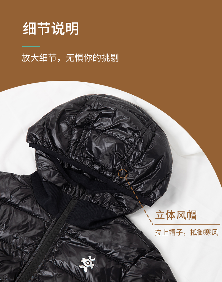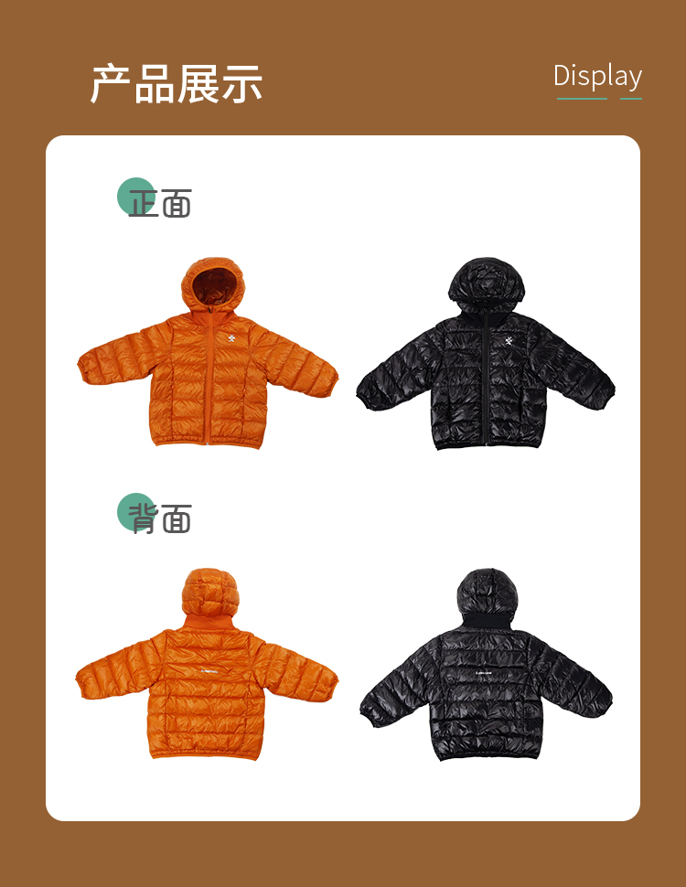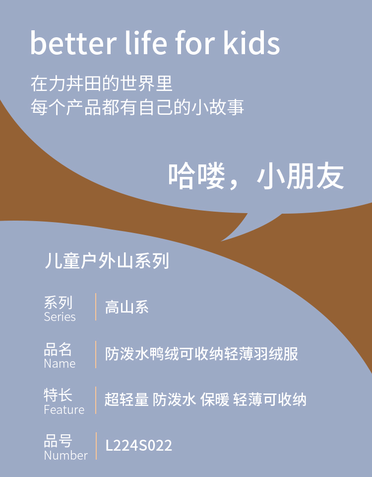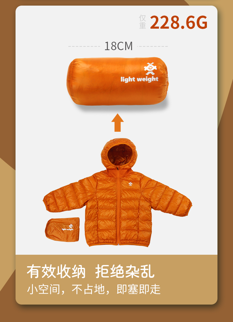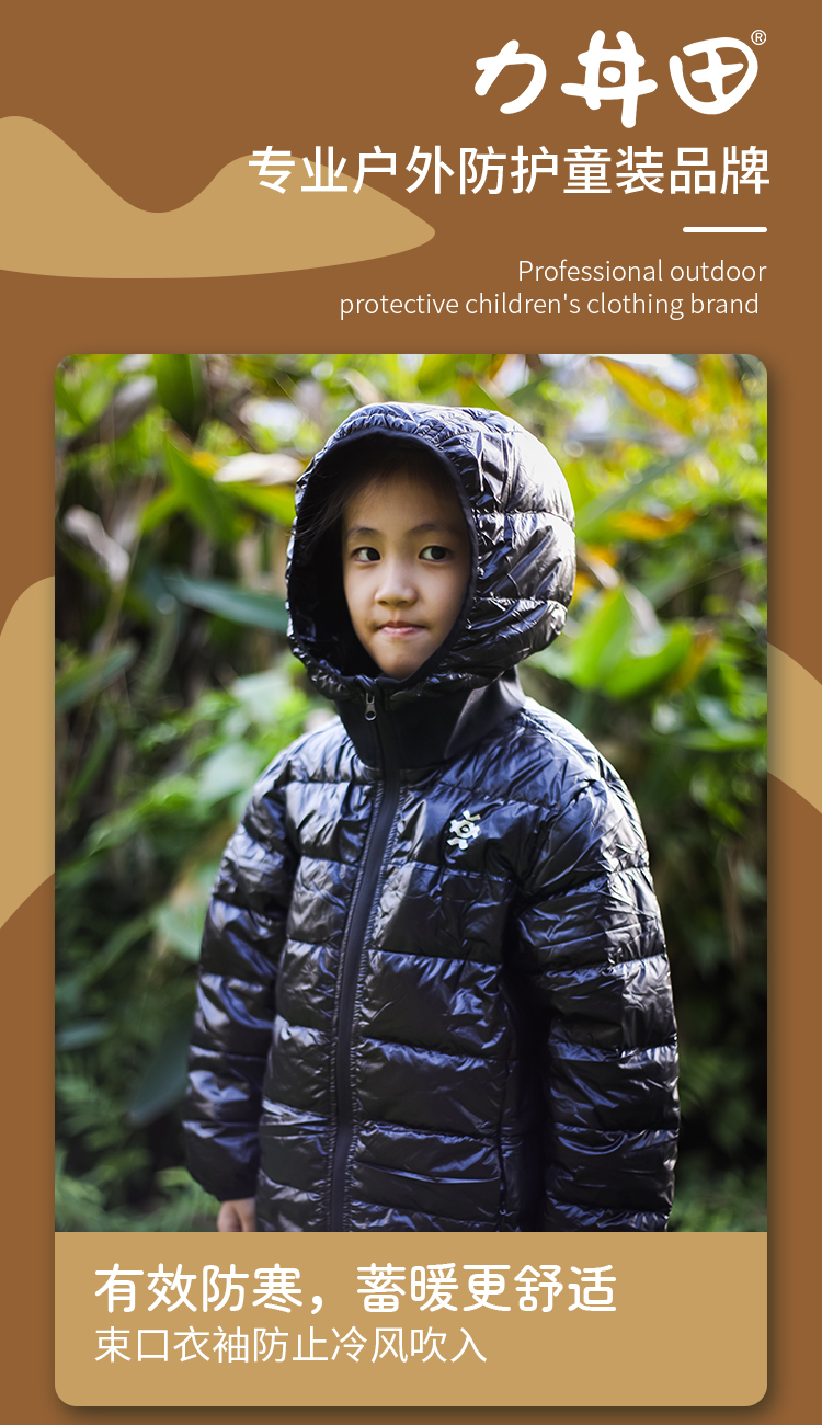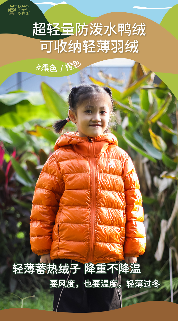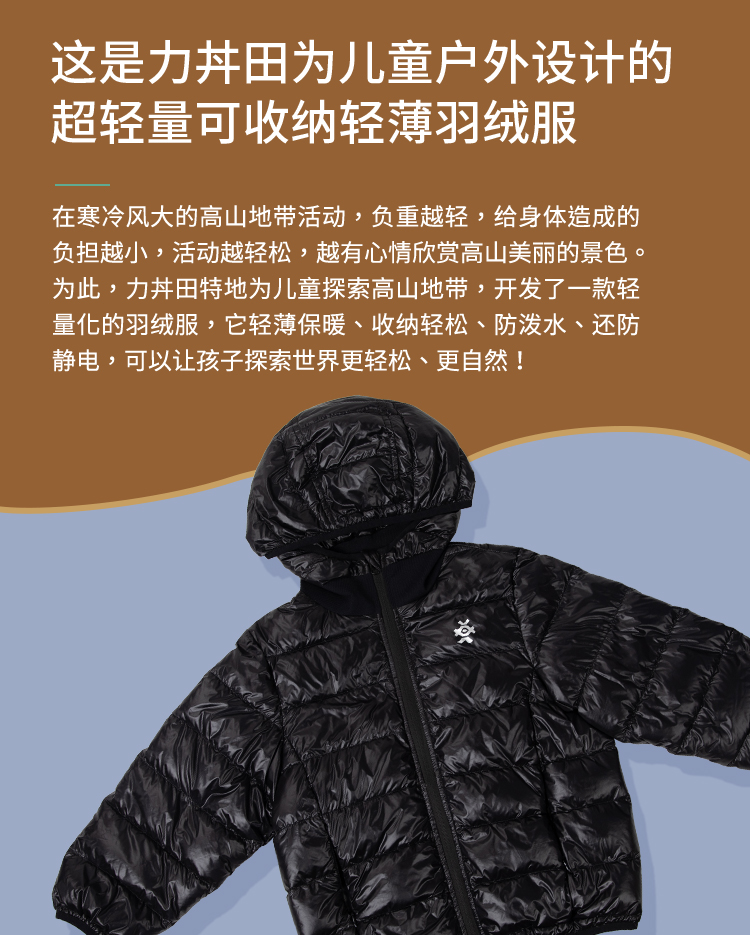 力丼田儿童户外攀山系列 国标90白鸭绒可收纳羽绒服 轻量保暖防泼水 L2211S022CAOE