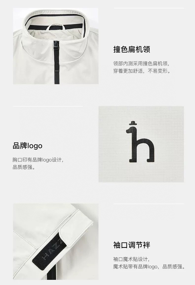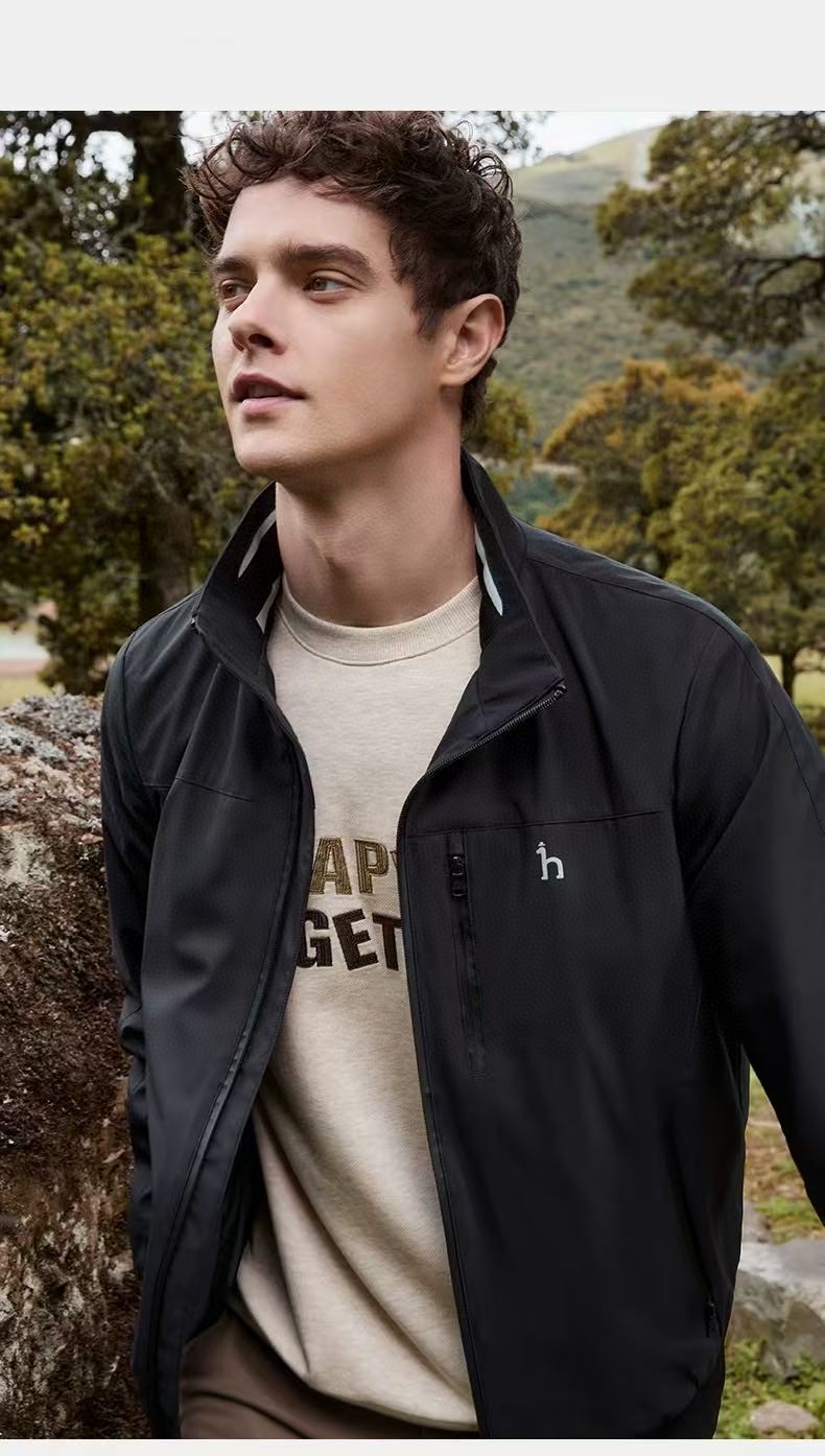 Hazzys哈吉斯新品男装纯色夹克挺括外套休闲时尚运动长袖上衣 运动内立领夹克