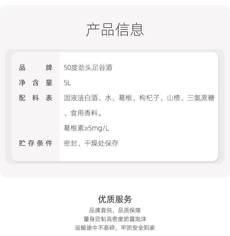 50°劲牌劲头足谷酒5L装(塑料桶)