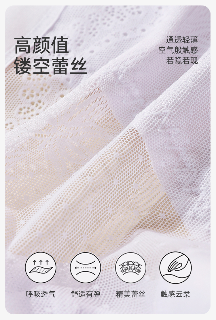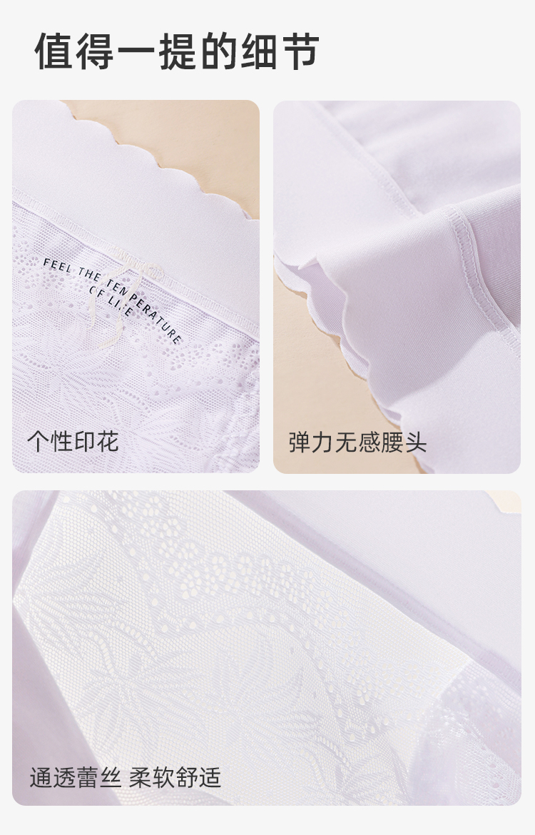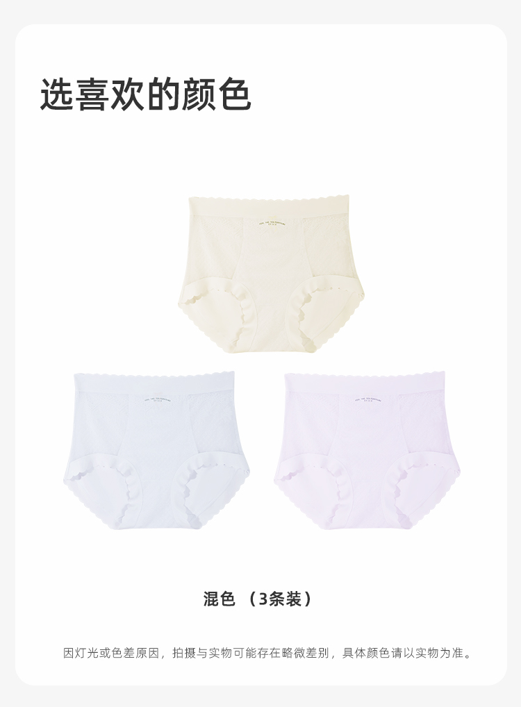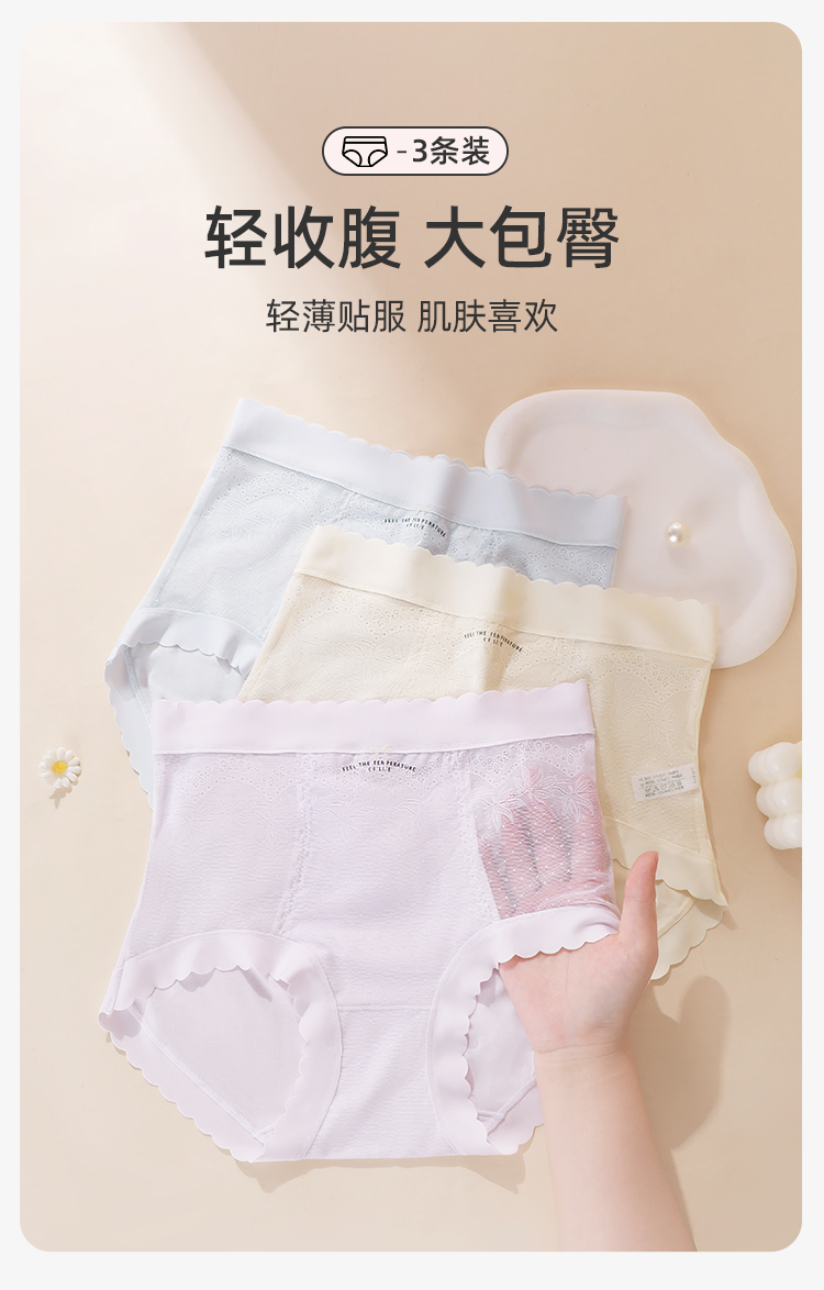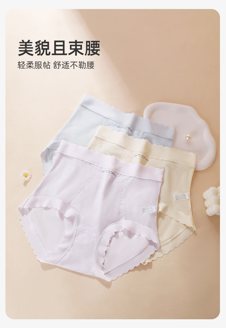 【3条装】熳洁儿 莫代尔女士内裤高腰蕾丝微收腹波浪边24762113
