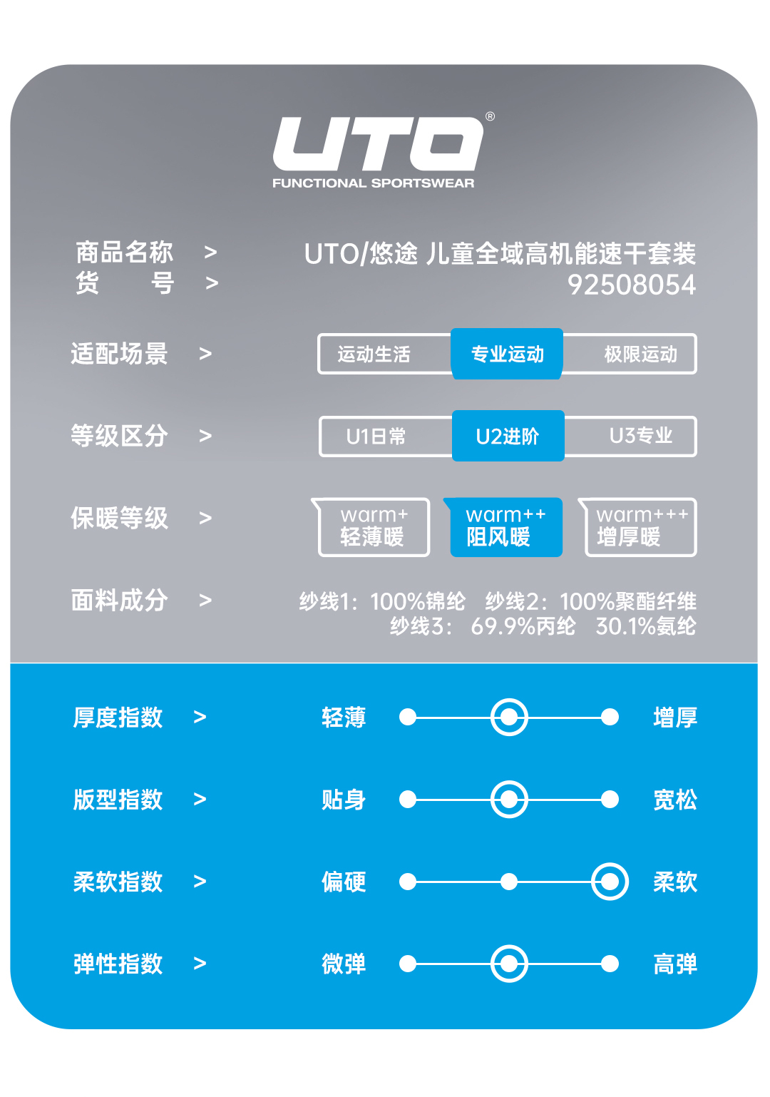 UTO悠途潜心于贴身运动装备的研发、设计和生产。从纤维到组织,从设计到工艺,在无缝贴身运动装备领域,树立国内标杆。 UTO着力于品牌互联网化,不断采集大量运动数据,为跑步、健身、滑雪等不同类型的运动爱