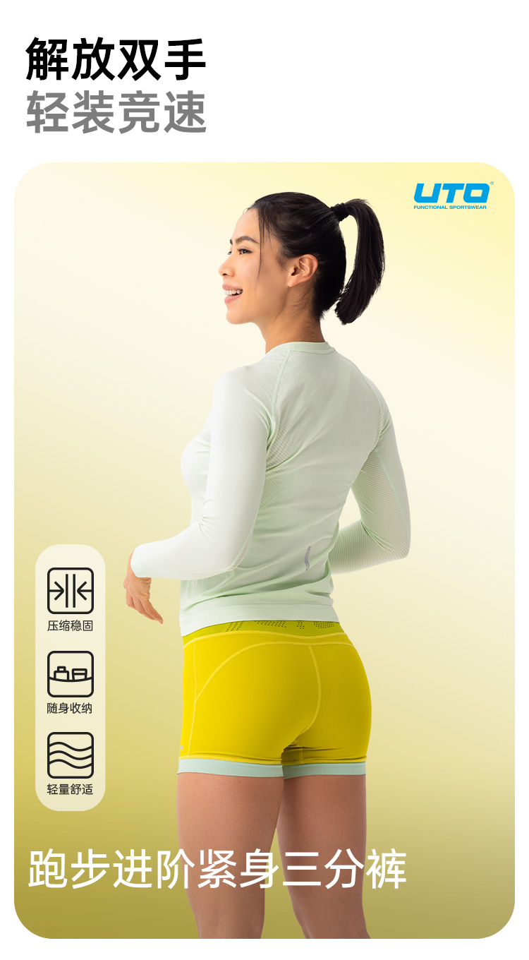 UTO女士跑步进阶款紧身三分裤