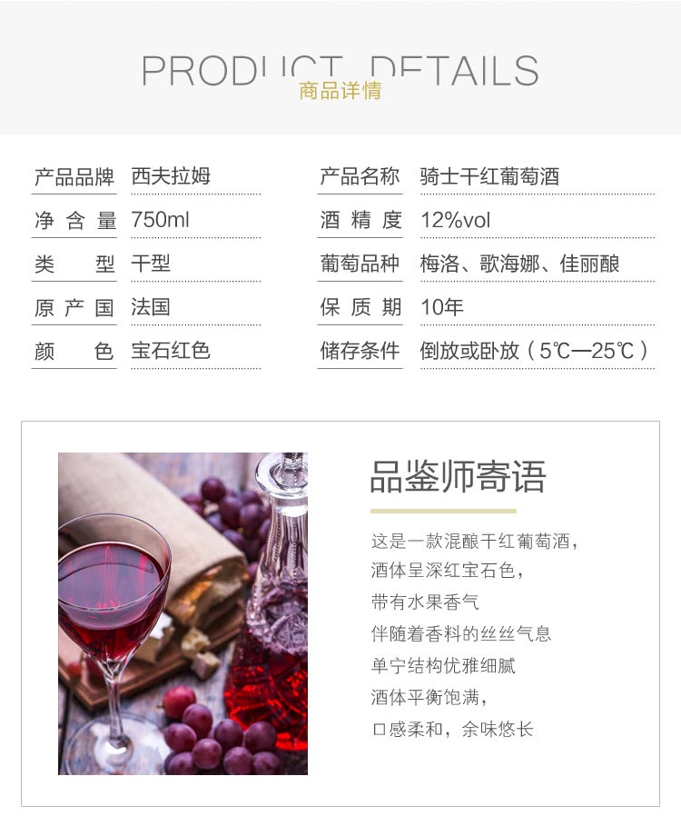西夫拉姆 骑士 干红葡萄酒 750ml 法国进口红酒