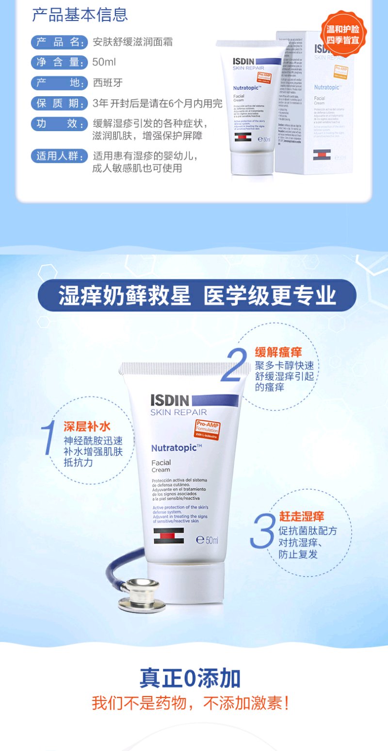 (超值)西班牙ISDIN怡思丁安肤舒缓滋润面霜50ml