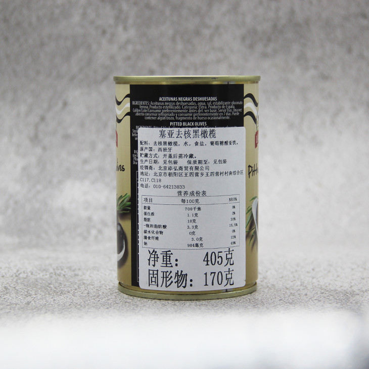 西班牙进口 塞亚无核黑橄榄 去核黑水榄405g 披萨意面西餐附料