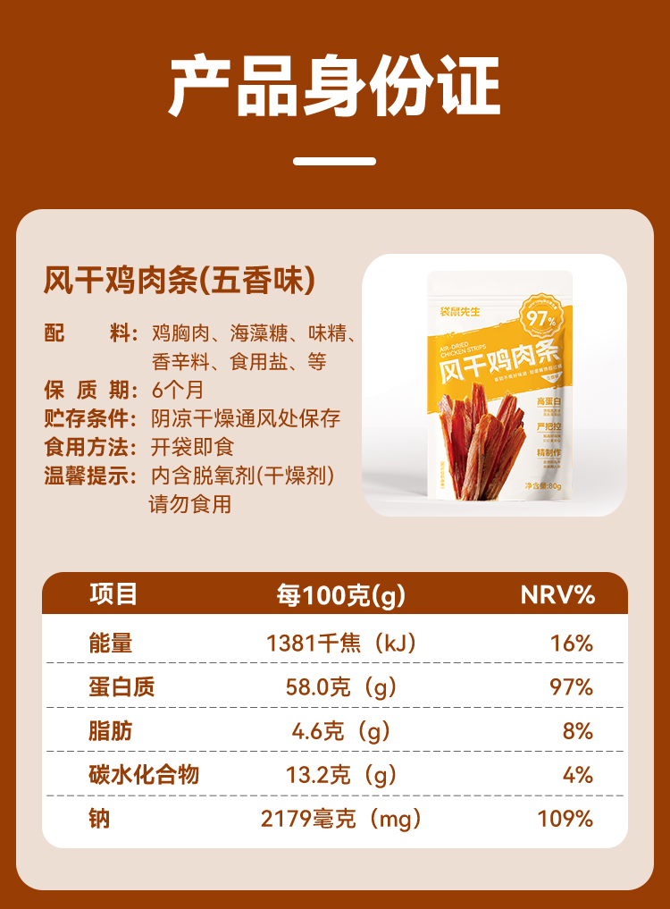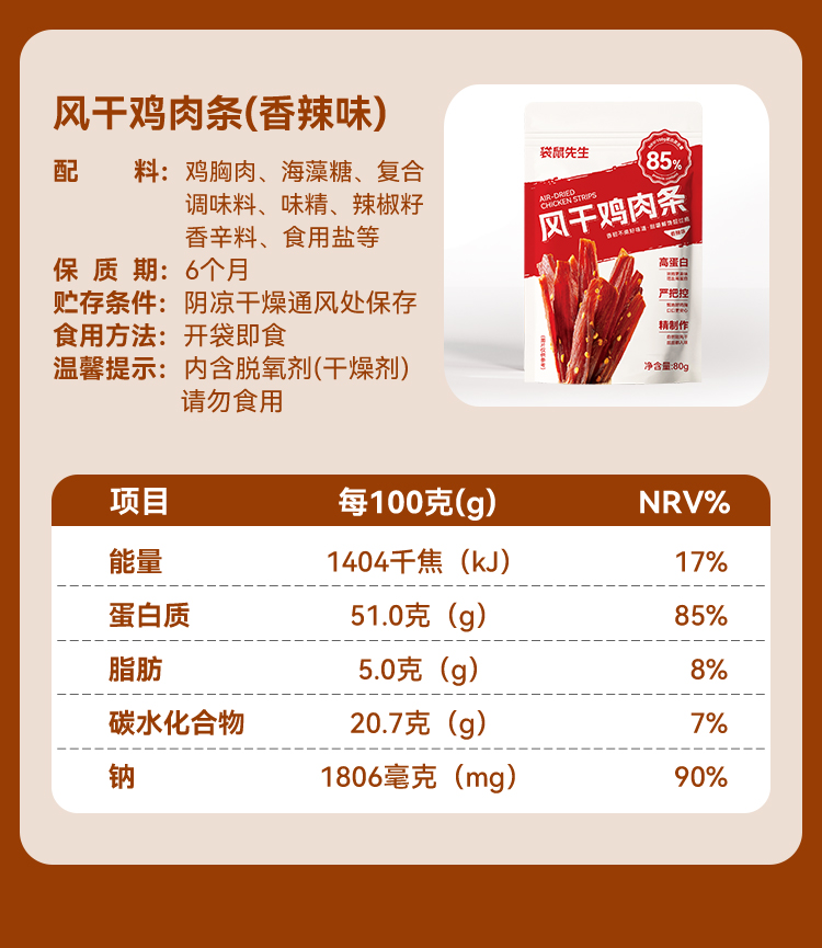 【189元任选20件】袋鼠先生风干鸡肉条80g