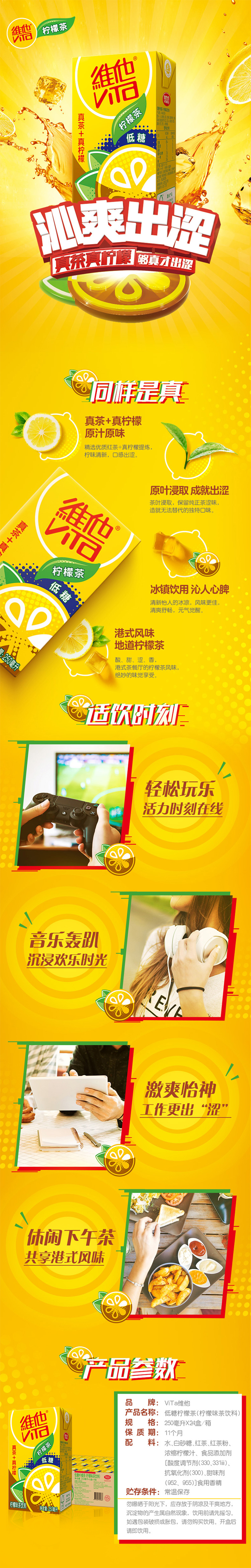 Vita维他低糖柠檬茶250ml*24盒 茶餐厅风味 低糖 健康 包邮