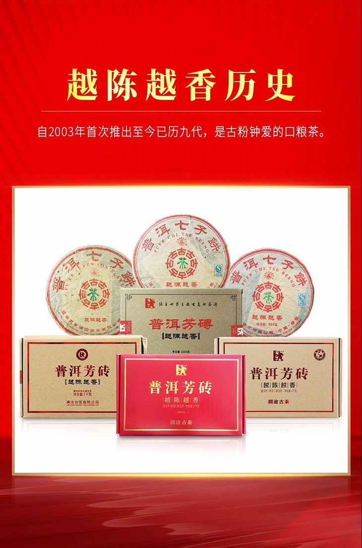 【老茶开仓专享】澜沧古茶2019年越陈越香普洱芳砖 熟茶 1000g/砖