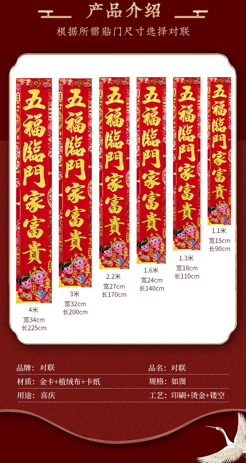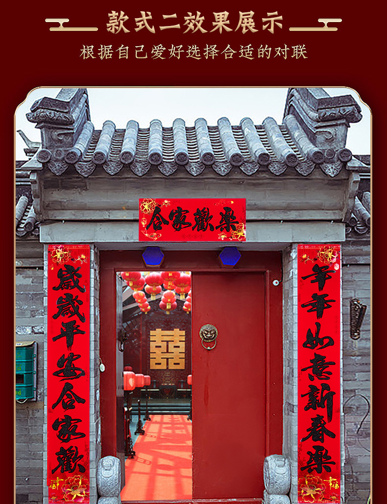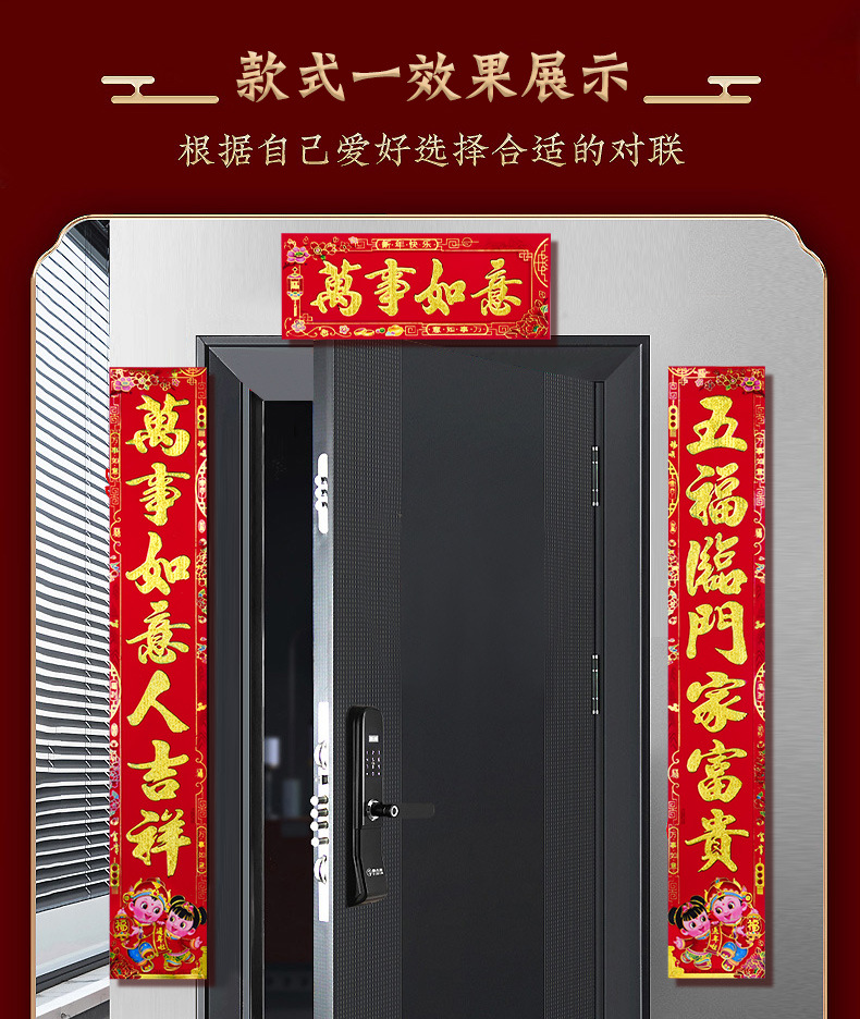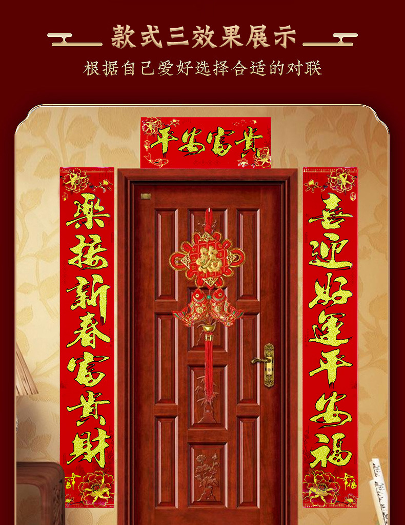 【2022虎年】金粉 春联 对联 过年 春节 新年 植绒 黑字 新春 默认发烫金 门联 款式随机 可备注 包邮
