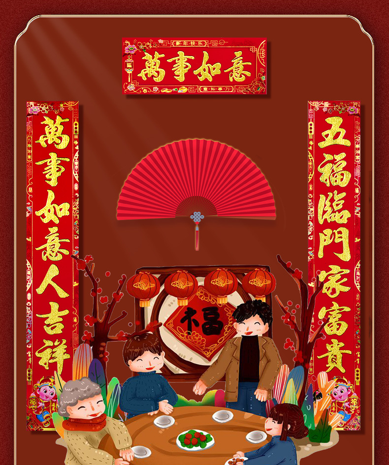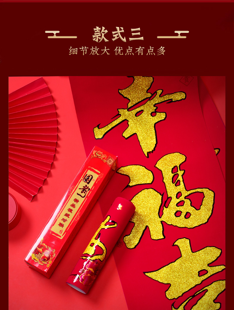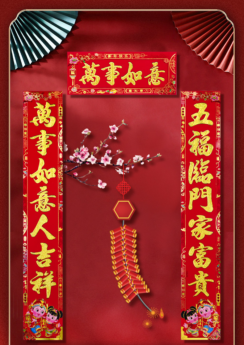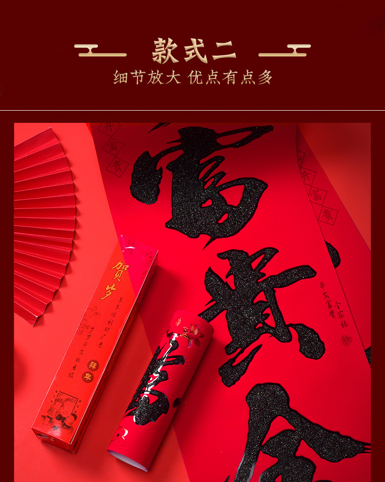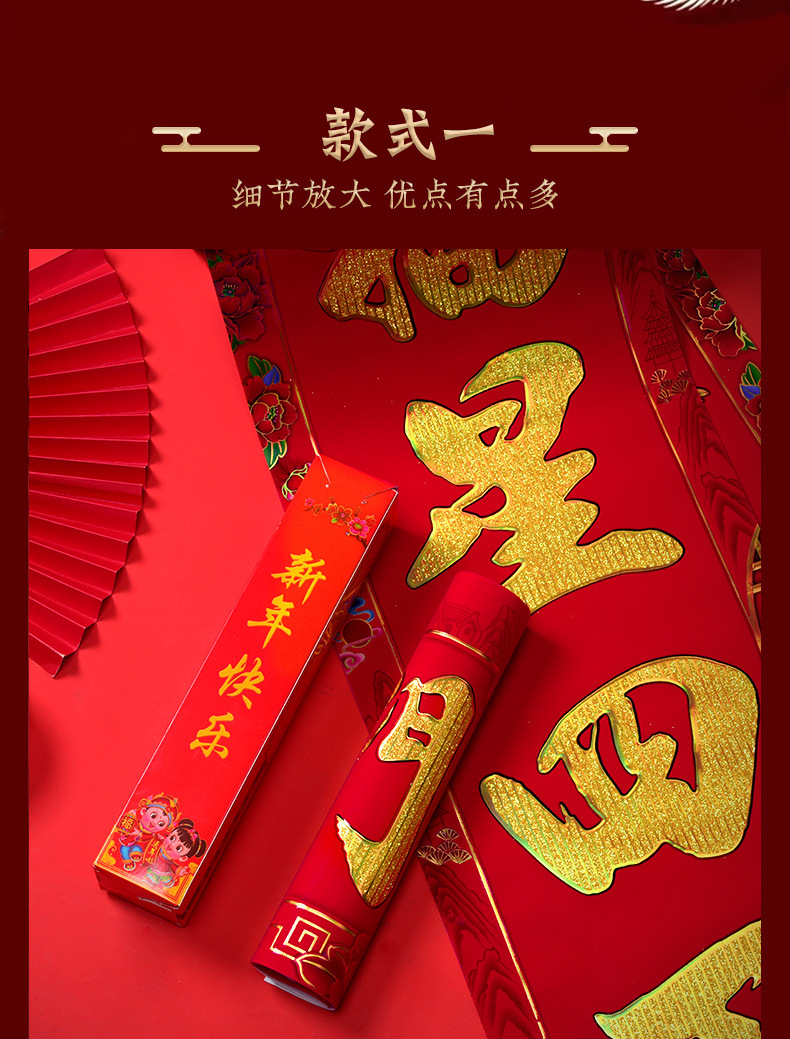 【2022虎年】金粉 春联 对联 过年 春节 新年 植绒 黑字 新春 默认发烫金 门联 款式随机 可备注 包邮
