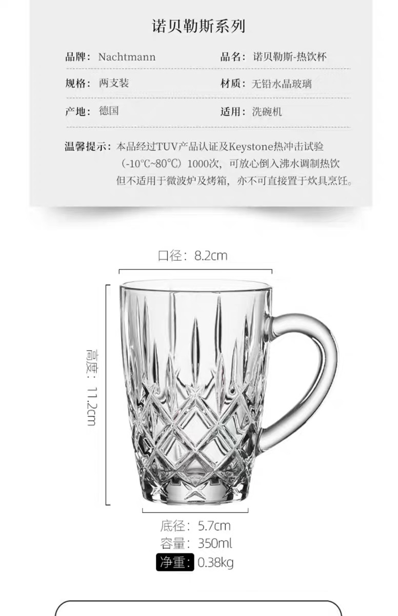德国进口NACHTMANN水晶玻璃热饮杯家用茶杯带把啤酒耐高温水杯