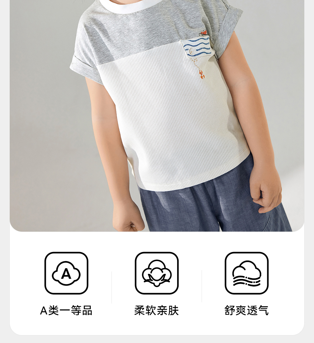 英氏儿童T恤夏季透气纯棉休闲套头衫男宝宝短袖上衣YRTCJ2R064A
