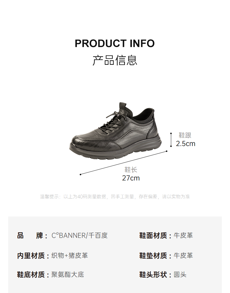 千百度2025冬季男鞋清晰手感柔韧穿着透气舒适健步鞋A25549093