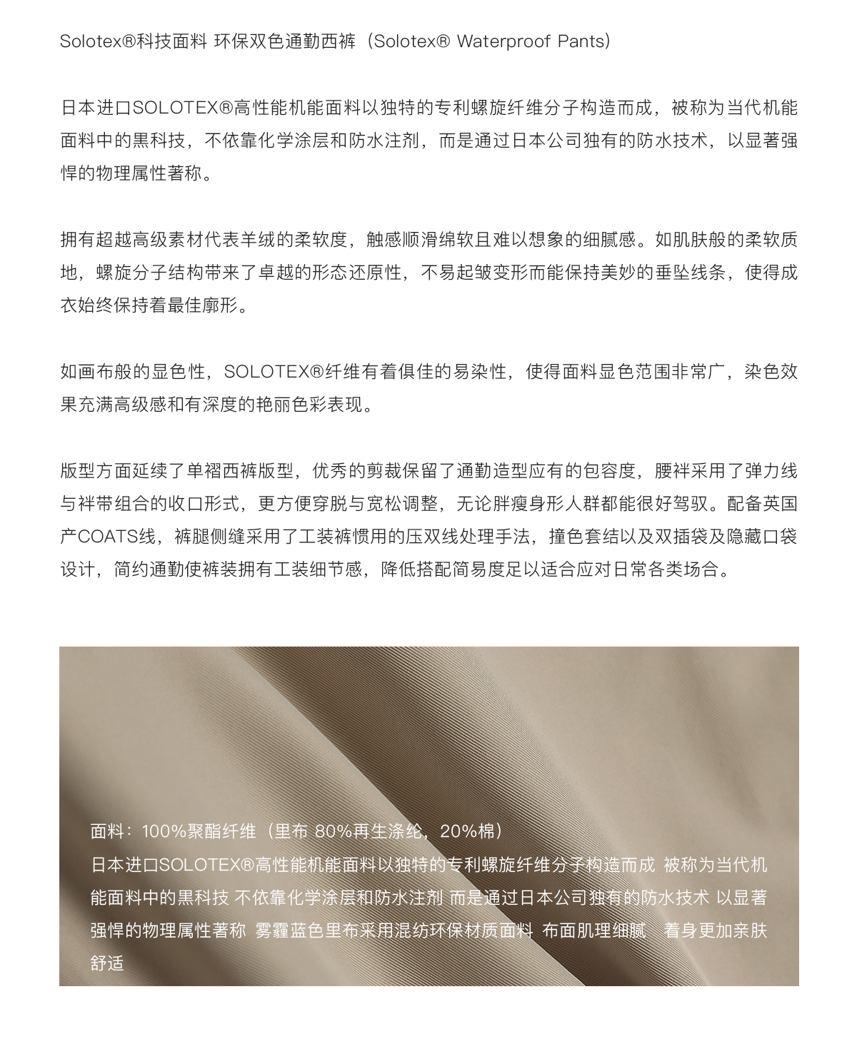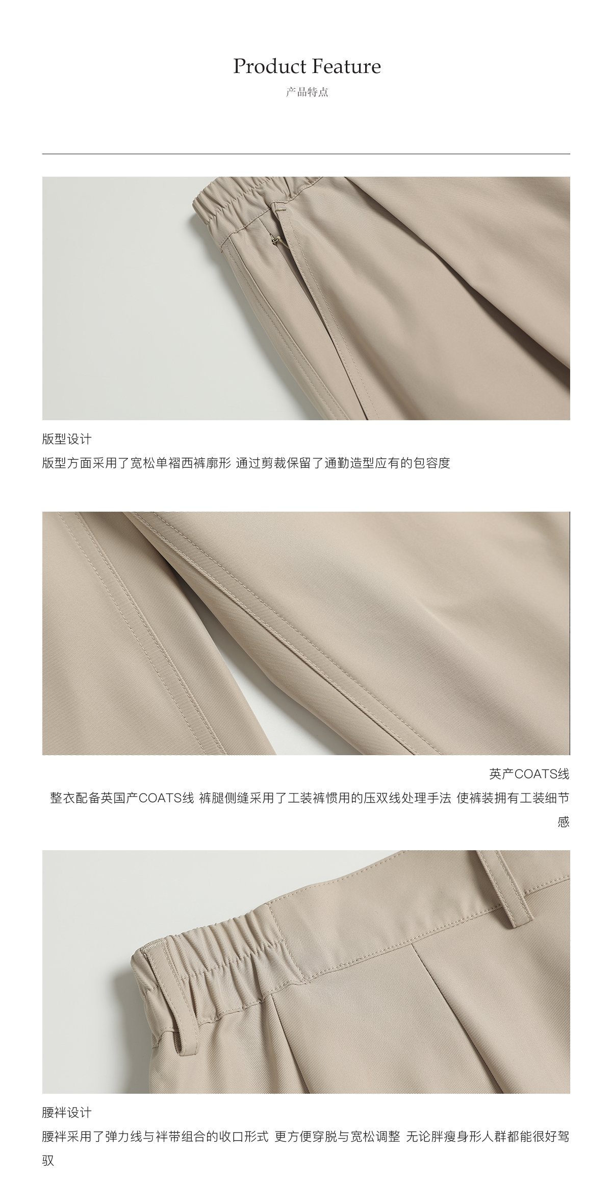 Evistub/E-3CCK04/抗皱防水微锥日系四季百搭通勤休闲西裤