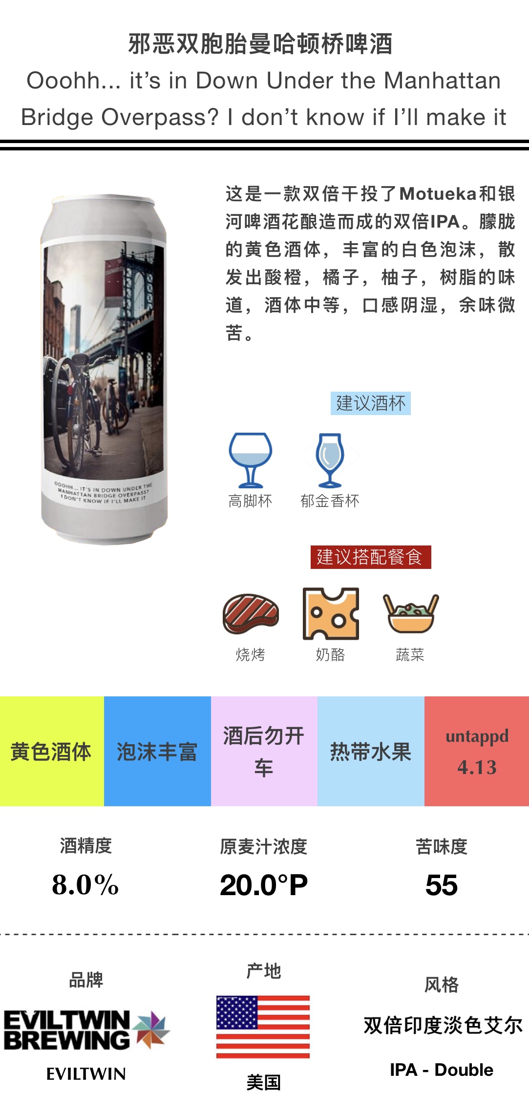 邪恶双胞胎曼哈顿桥啤酒(Untappd4.13)