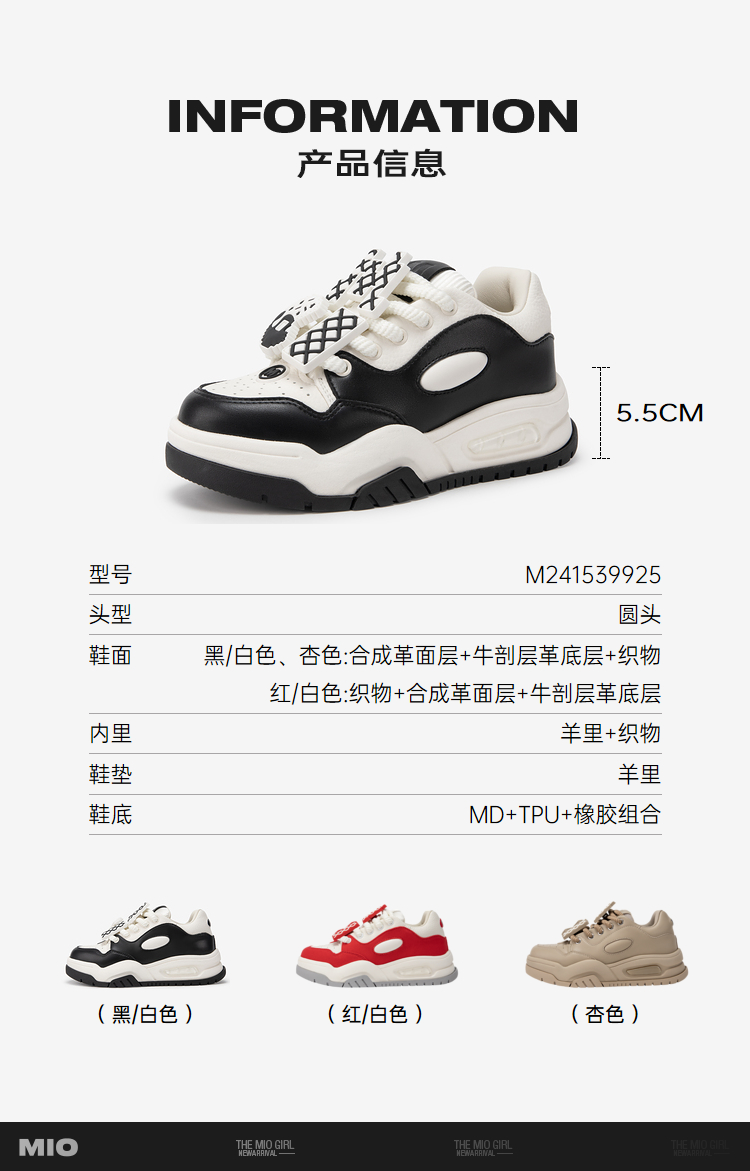 MIO米奥春季厚底时尚休闲鞋活力舒适通勤运动鞋女鞋M241539925