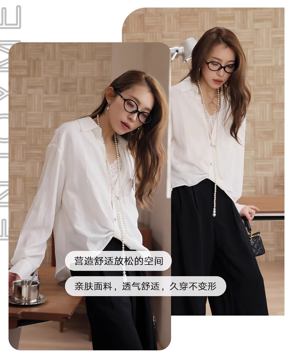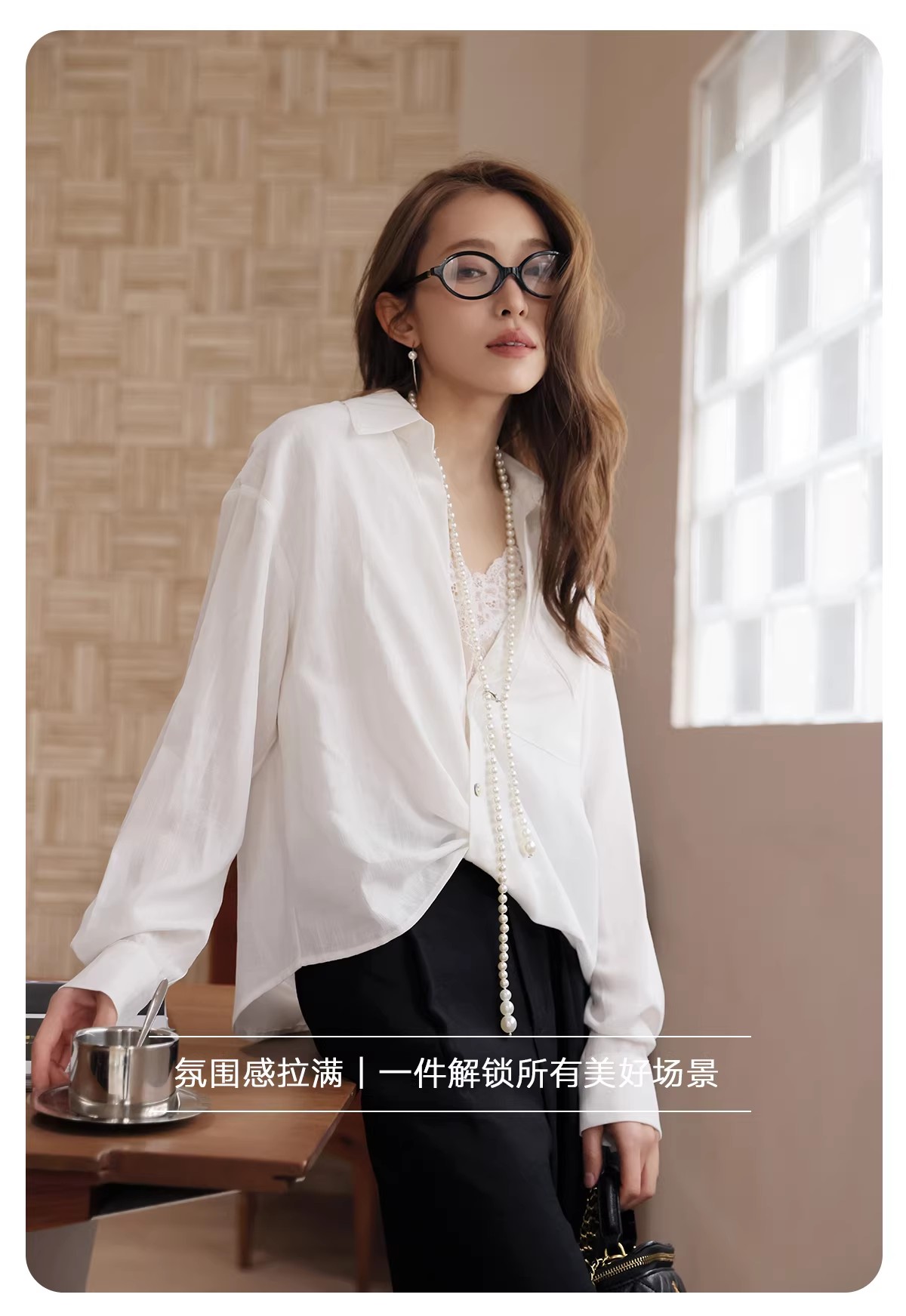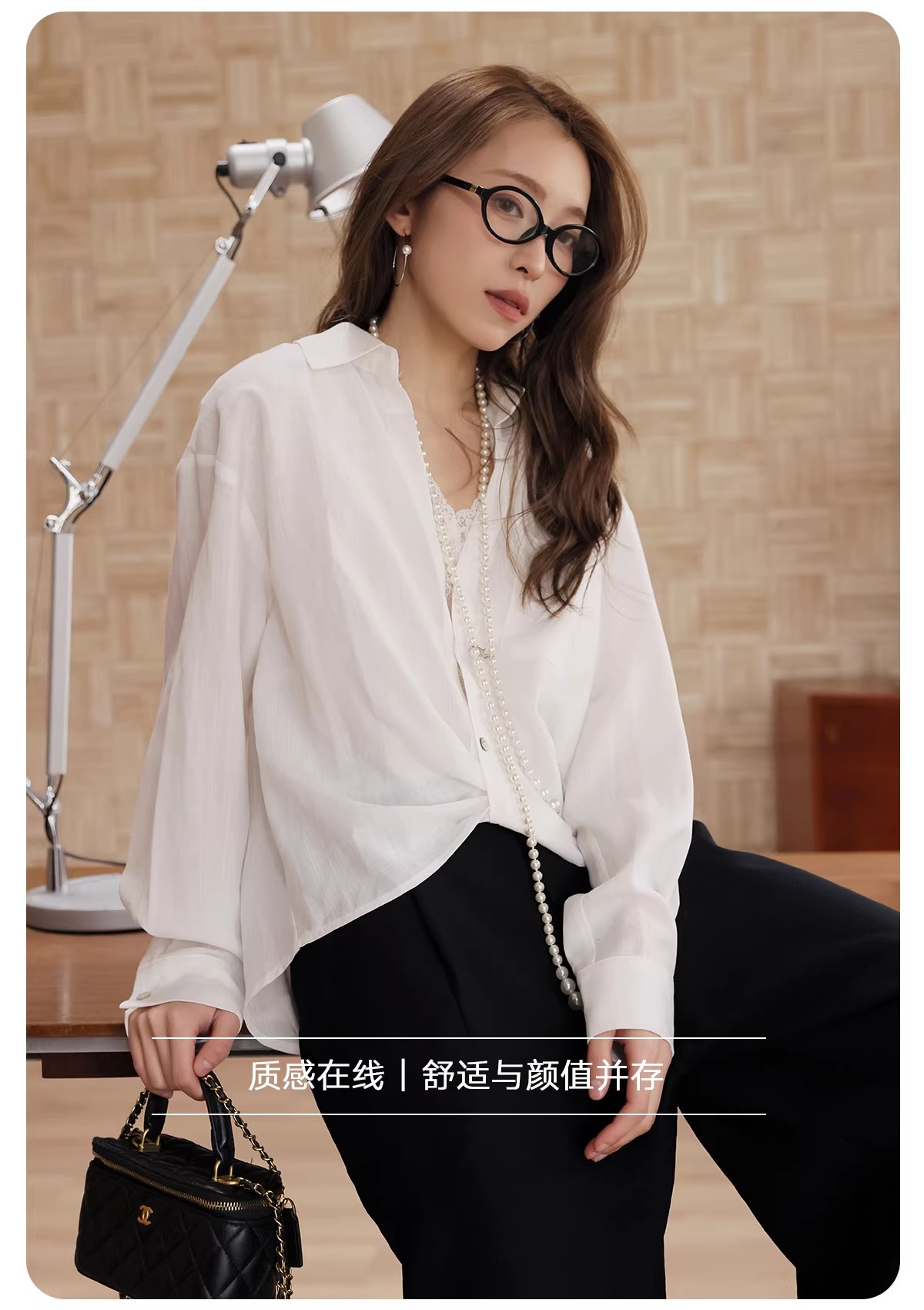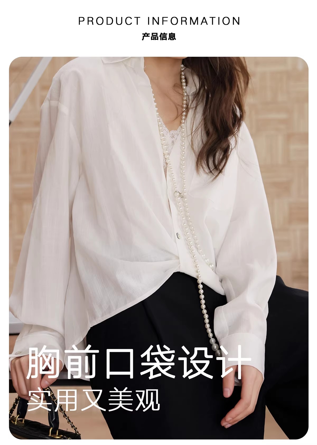 【门店同款】ENJOY春季“柔权主义”拼蕾丝V领扭结衬衣 169100023