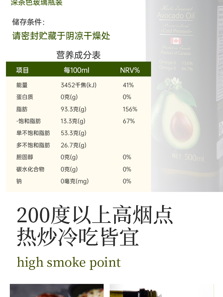 加拿大牛油果油 传统冷榨 富含Omega 纯原油 无添加 耐高温 加拿大原产 原瓶进口 |百里食