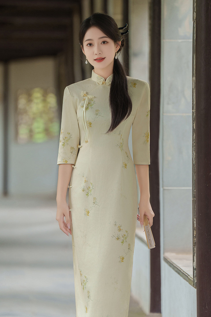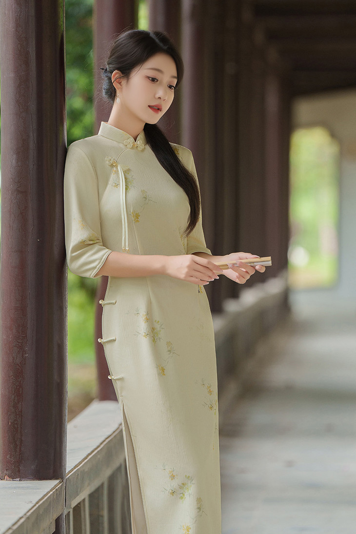 秋冬改良长款国风年轻日常气质修身新中式旗袍ZA234