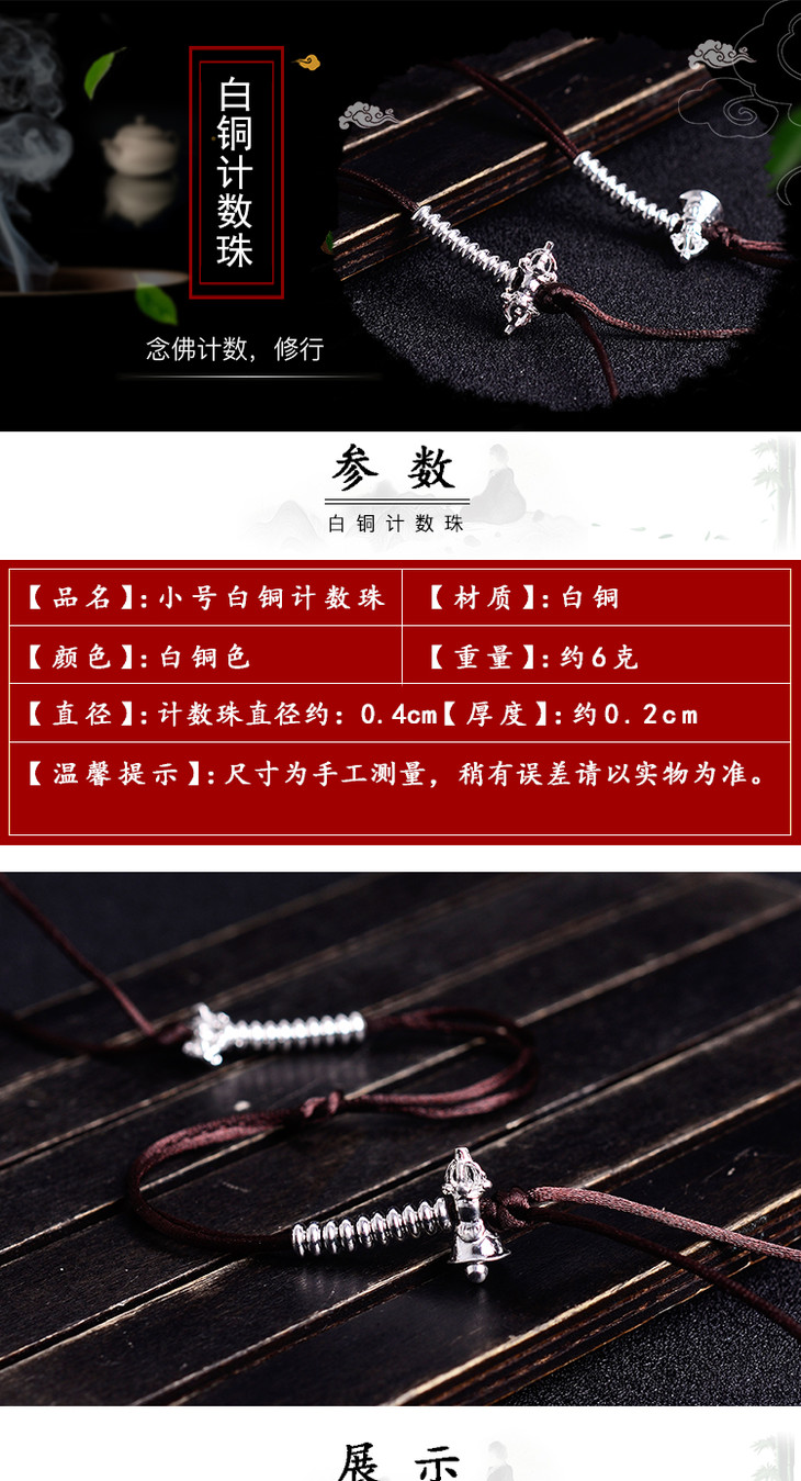 佛珠手珠计数器白铜计数珠计数夹卡子铃杵小号