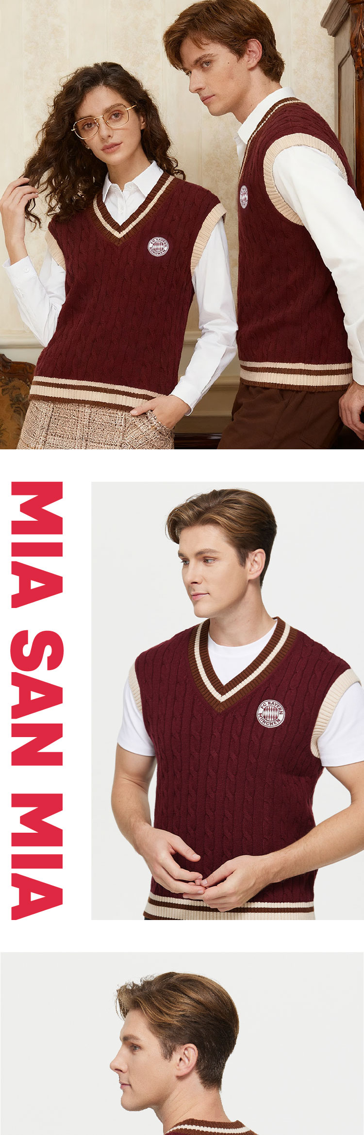 【官方正版】拜仁足球俱乐部丨秋季新款酒红色背心针织马甲学院