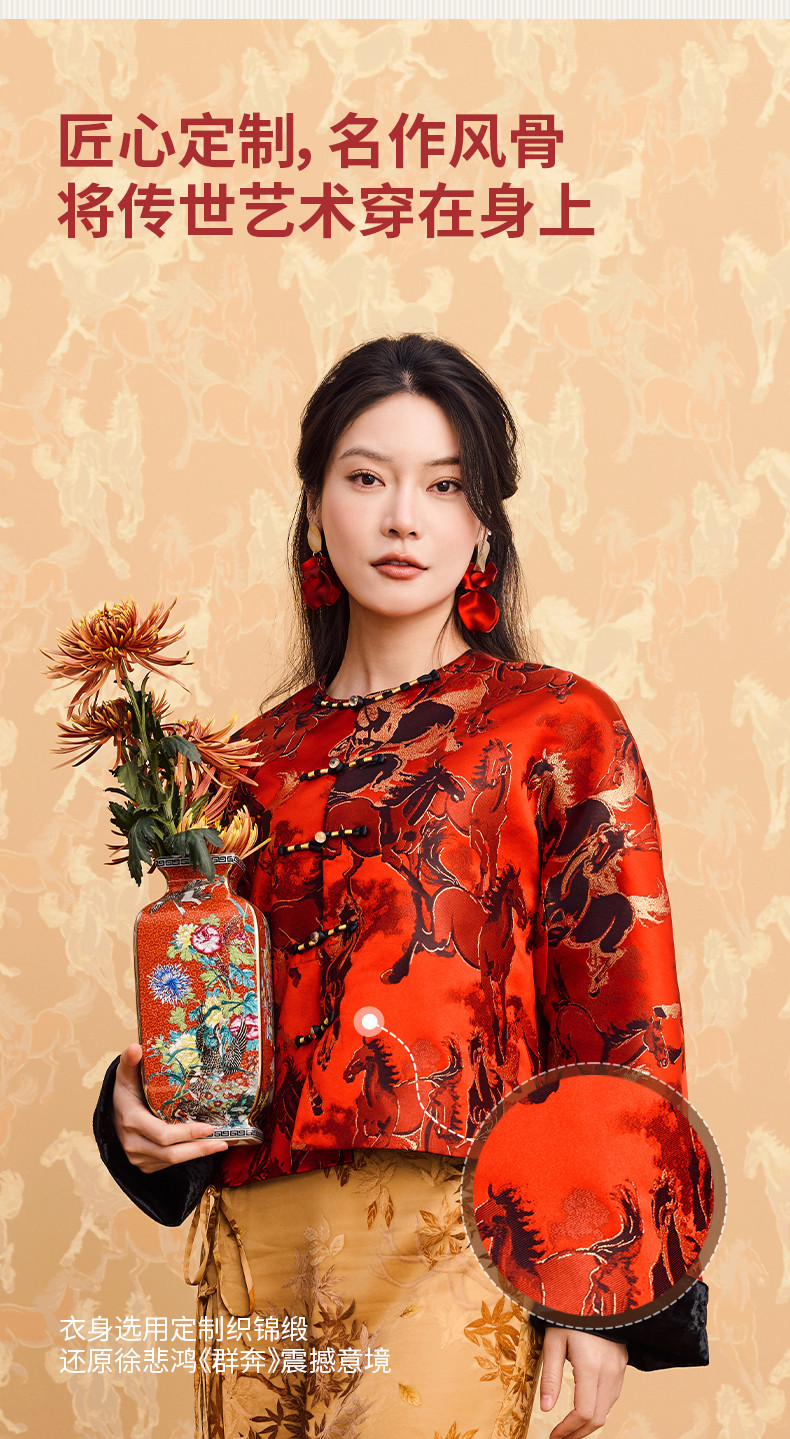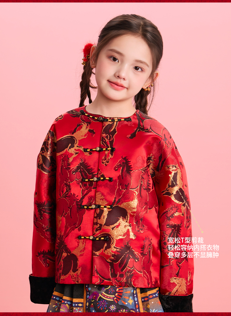 徐悲鸿联名年衣童装加绒唐装汉服冬季款儿童中式大展鸿图中式外套