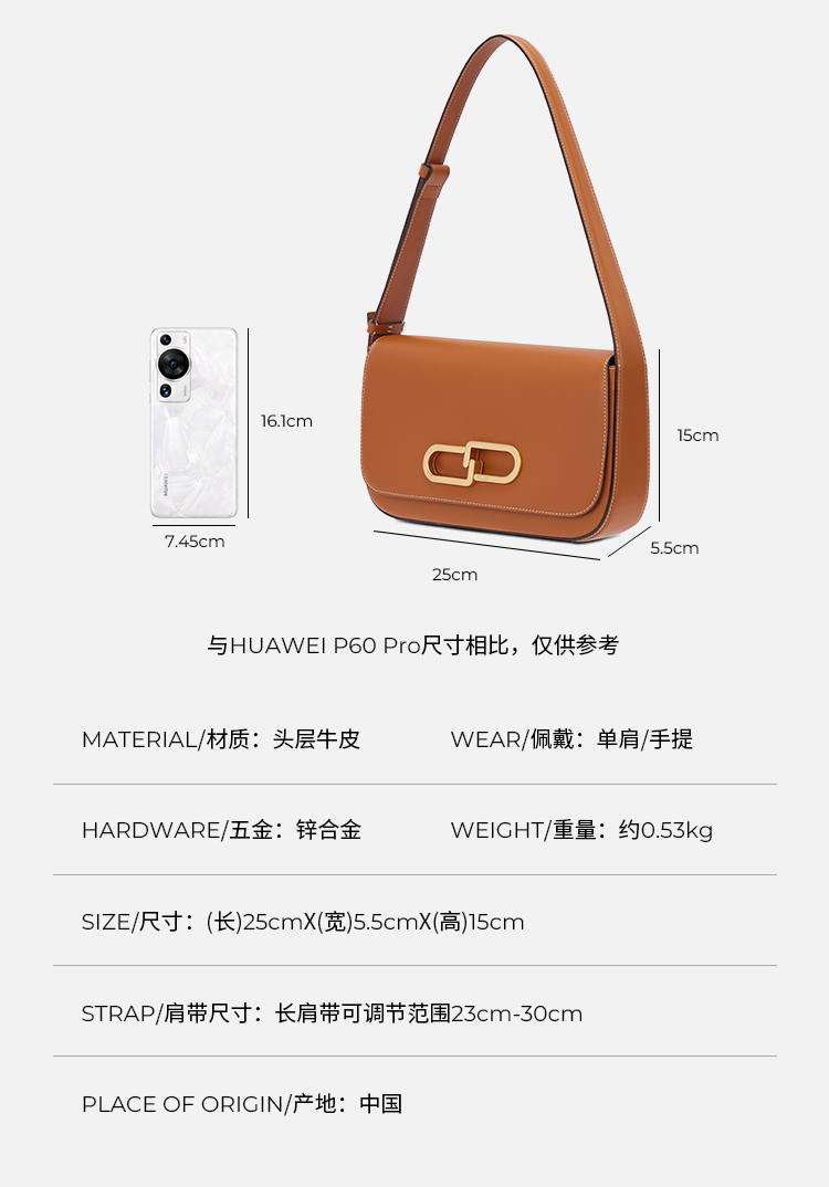 保兰德PLD东方雅奢PLD系列盘扣单肩手提包头层牛皮通勤必备女包