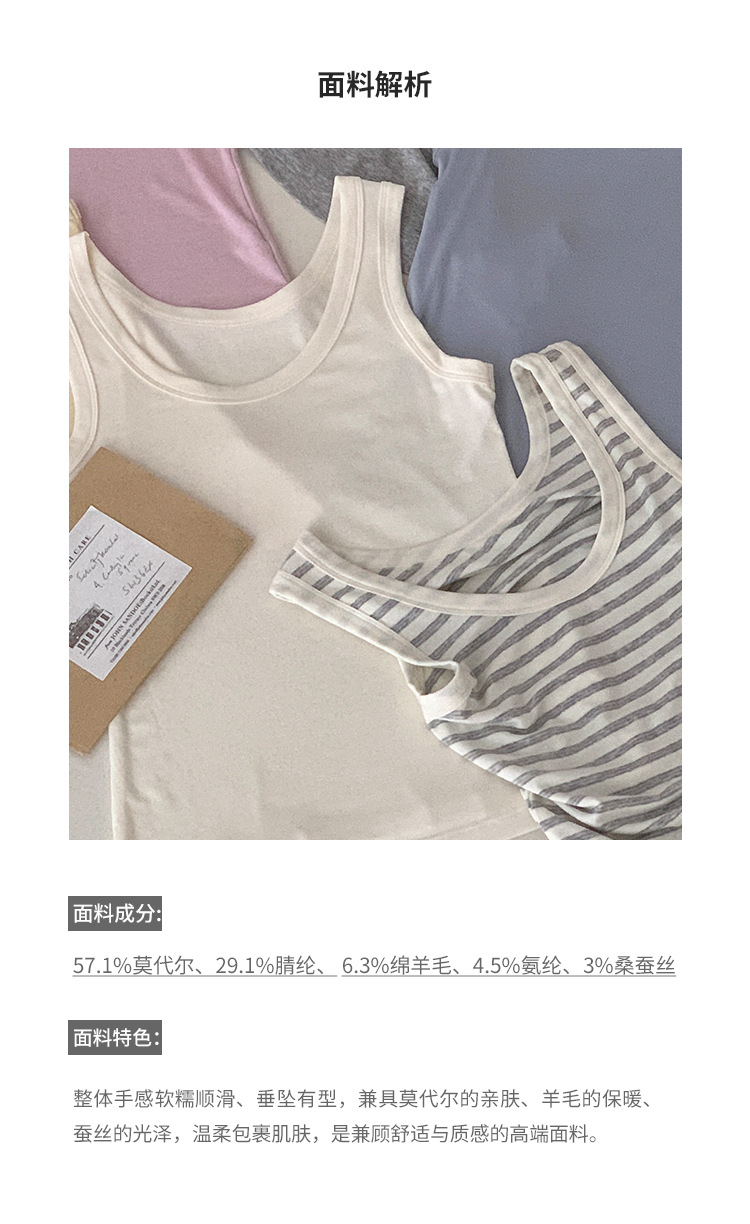 【69.9元拍2件】森岛 莫代尔背心 春夏桑蚕丝羊毛宽肩内搭单穿吊带衫