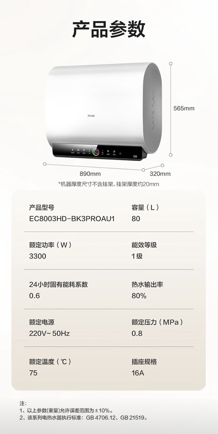 海尔(Haier)热水器 EC8003HD-BK3PROAU1