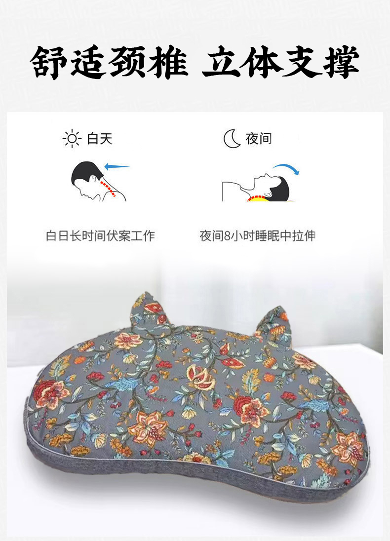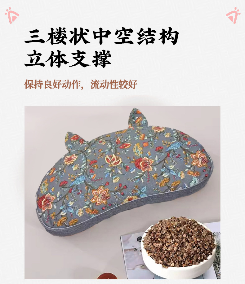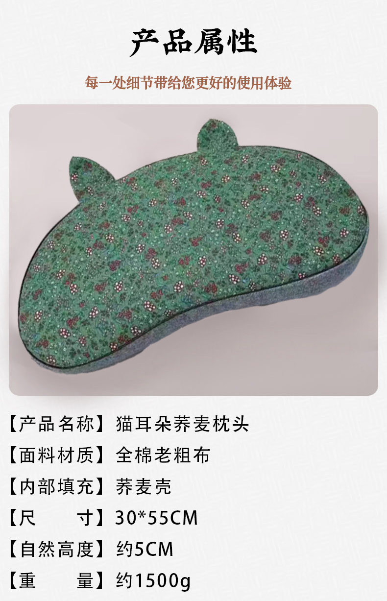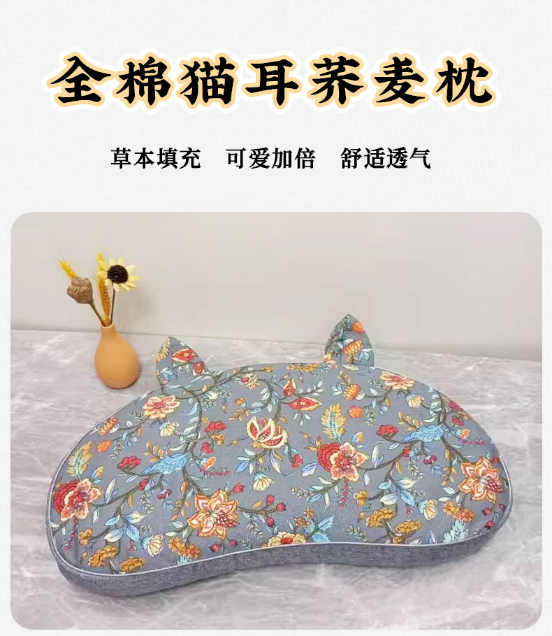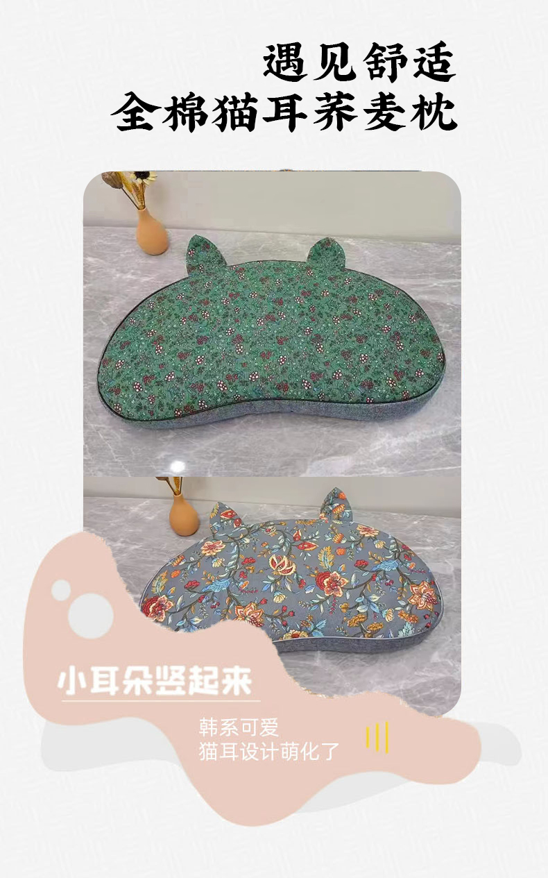 纯棉猫耳朵枕全荞麦壳枕头成人学生可拆洗枕芯午休单人助眠