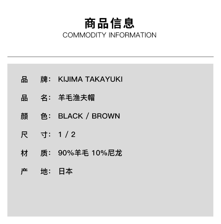 KIJIMA TAKAYUKI MELTON BUCKET HAT 男女中性款羊毛渔夫帽