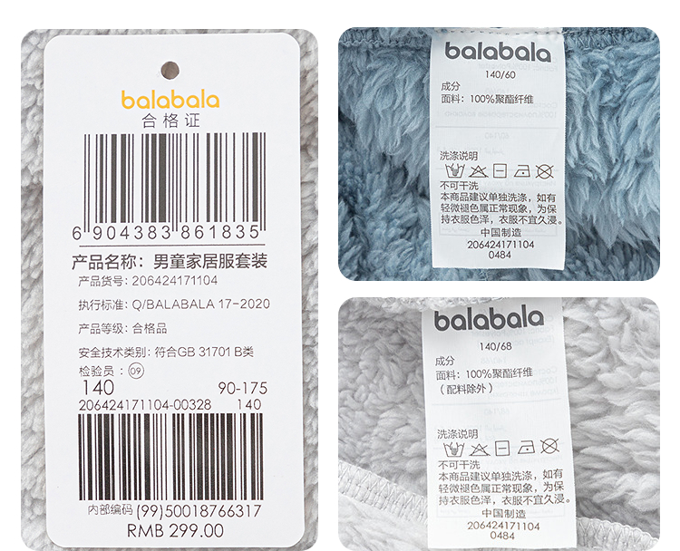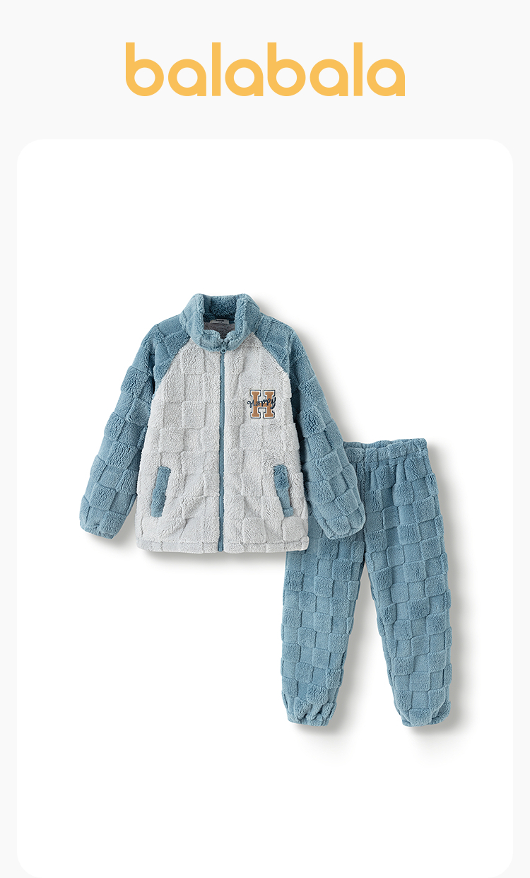 巴拉巴拉儿童睡衣套装冬加厚珊瑚绒男童家居服可外出保暖舒适时尚