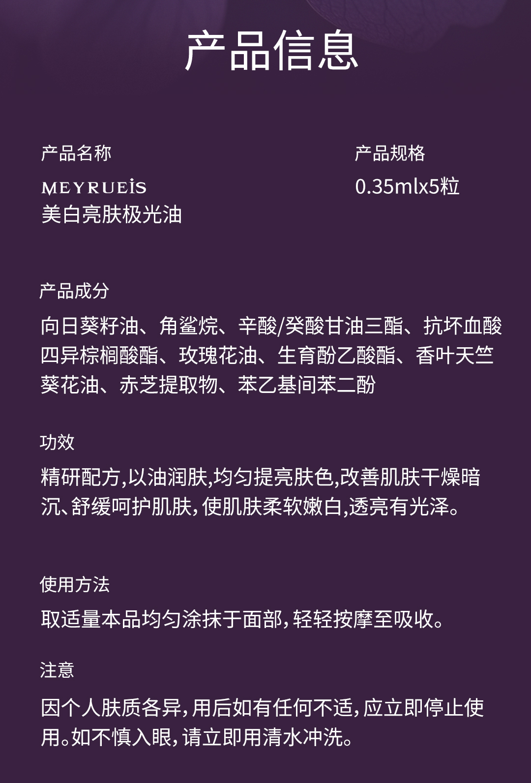 MEYRUEiS美白亮肤极光油 美白祛斑淡黄气以油润肤舒缓极光玫瑰油 商品缩略图0 MEYRUEiS美白亮肤极光油 美白祛斑淡黄气以油润肤舒缓极光玫瑰油 商品缩略图1 MEYRUEiS美白亮肤极光油 美白祛斑淡黄气以油润肤舒缓极光玫瑰油 商品缩略图2 MEYRUEiS美白亮肤极光油 美白祛斑淡黄气以油润肤舒缓极光玫瑰油 商品缩略图3