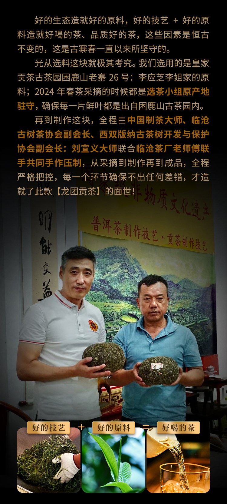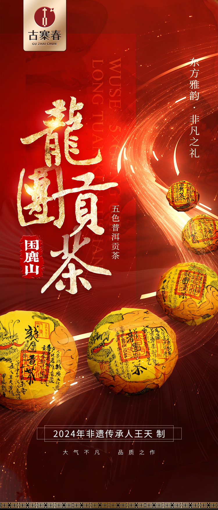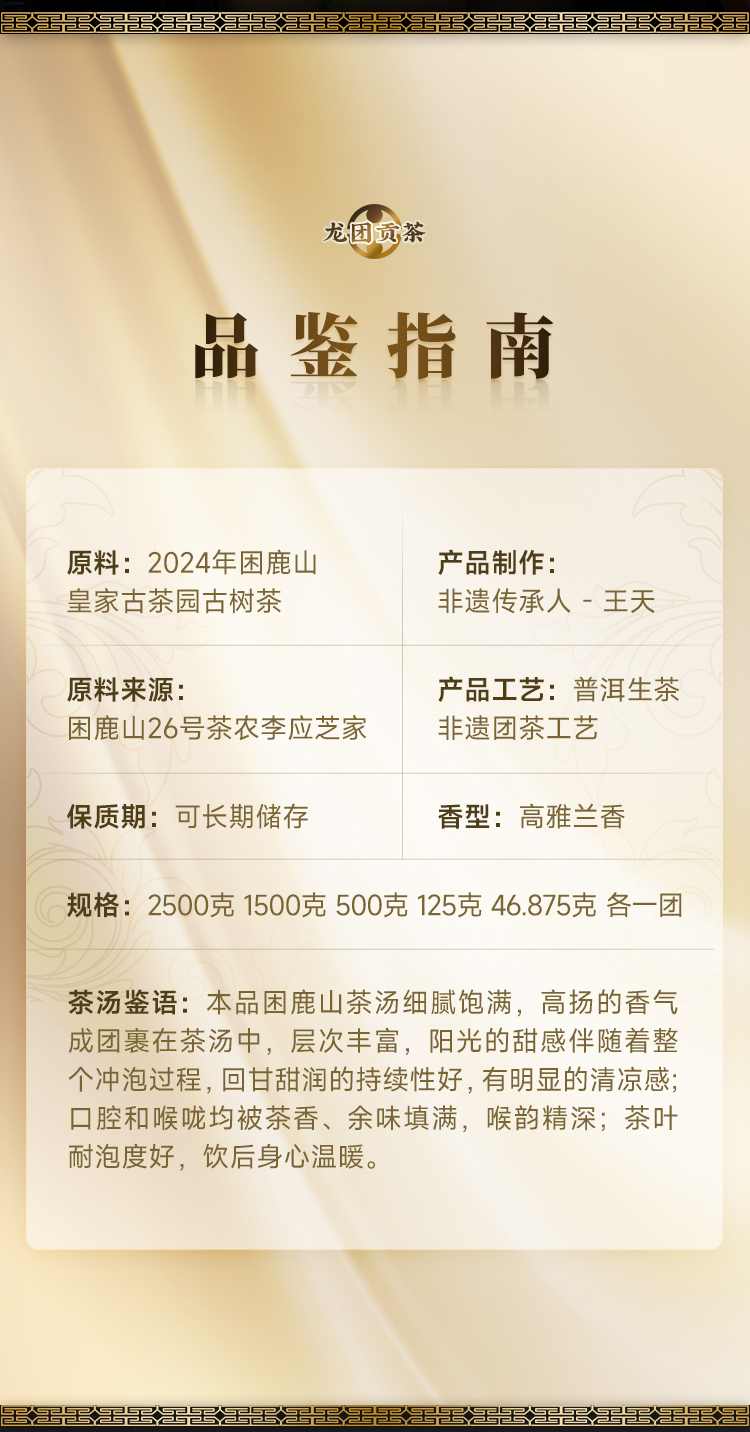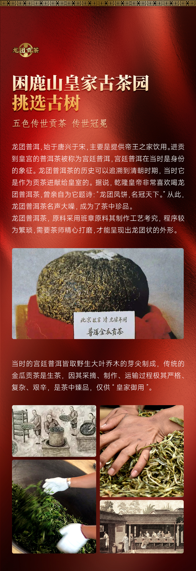 困鹿山龙团贡茶【五色贡茶】2024年困鹿山26号茶农家古树茶,非遗传承人王天老师亲制普洱贡茶,收藏规格:2500g/1500g/500g/125g/46.875g各一团