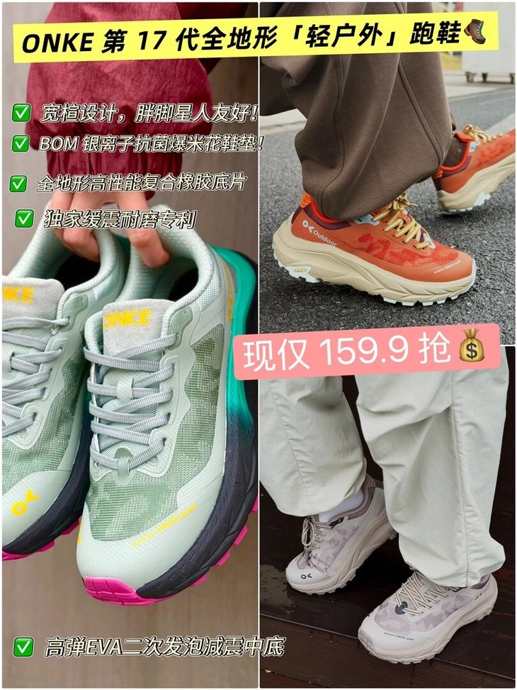 【❗❗新品跑鞋全能王✨正码正拍❗】德国ONKE第17代全地形科技跑鞋震撼来袭💥~搭配户外山地科技👍户外/徒步/通勤/运动❗新年新色系🧧升级不加价!现仅159.9元抢💰