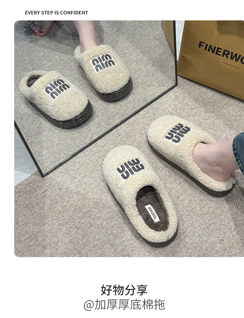 【敲好看!出街值得拥有】新款踩屎感棉拖鞋男士秋冬季室内家居简约保暖加绒加厚棉拖女。rb