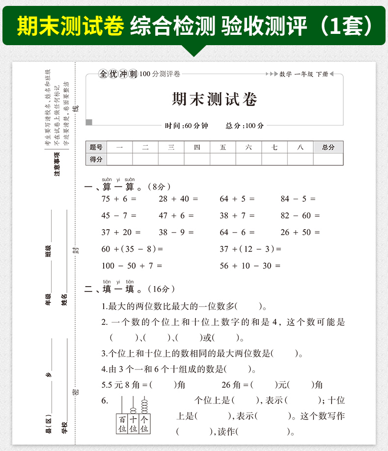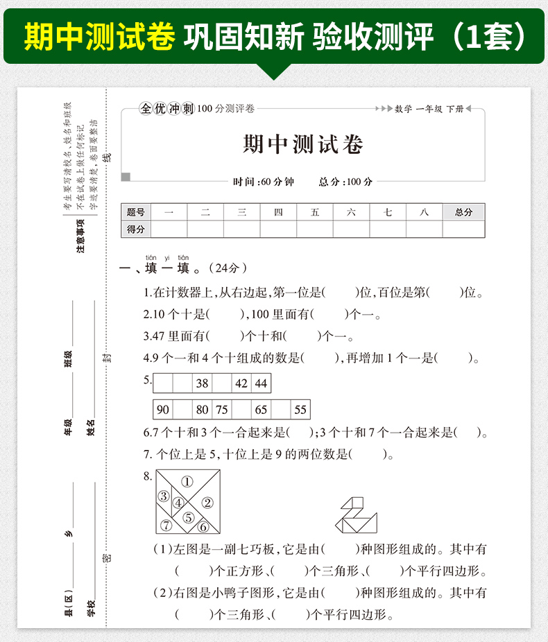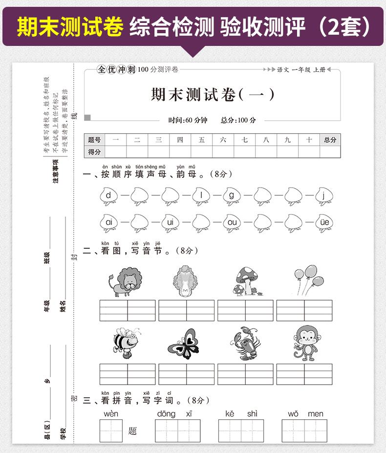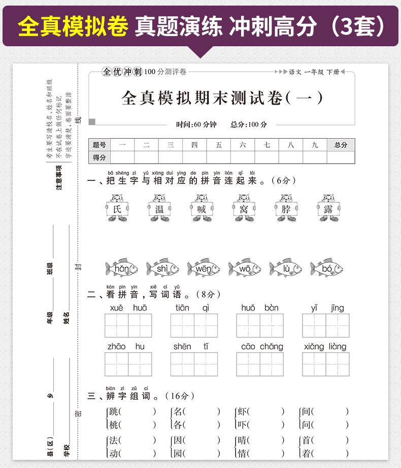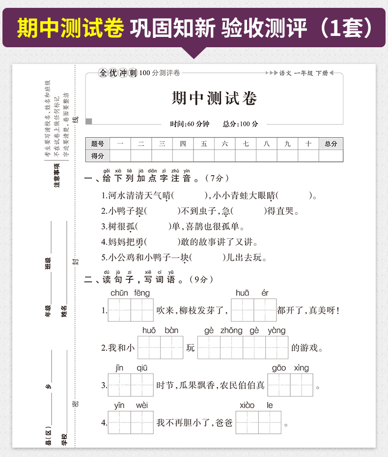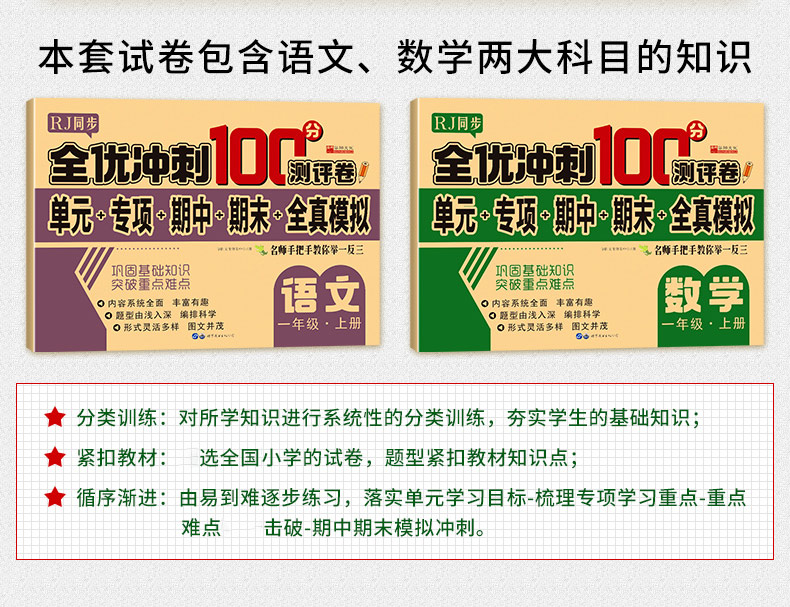 【课堂同步!题型丰富】全优冲刺100分试卷一二三四五六七年级上下册,小学生语文数学模拟卷,形式灵活多样 图文并茂。hb
