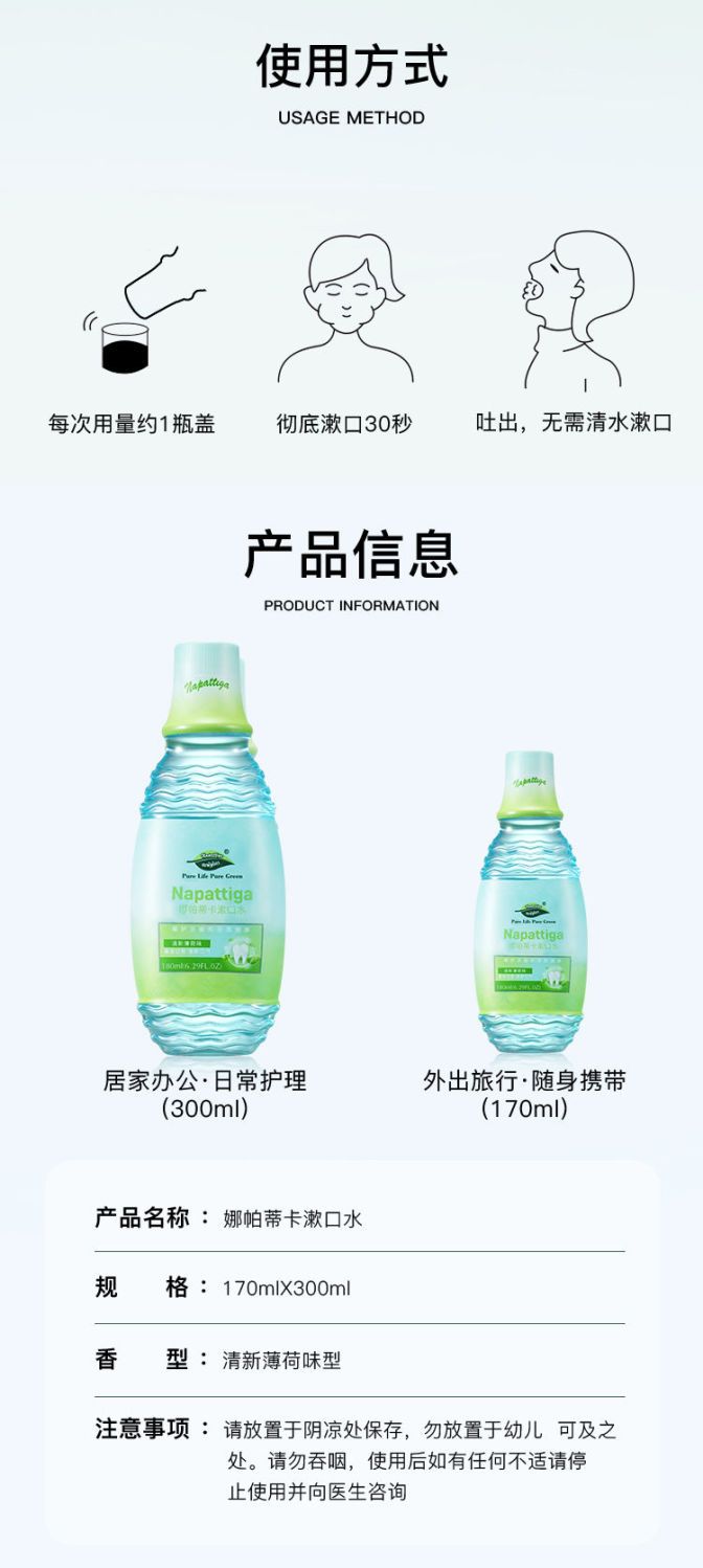 【爆款超低价预售 急单慎拍】娜帕蒂卡漱口水去牙渍祛牙垢清新口气口臭学生便携式一次性瓶装袋
