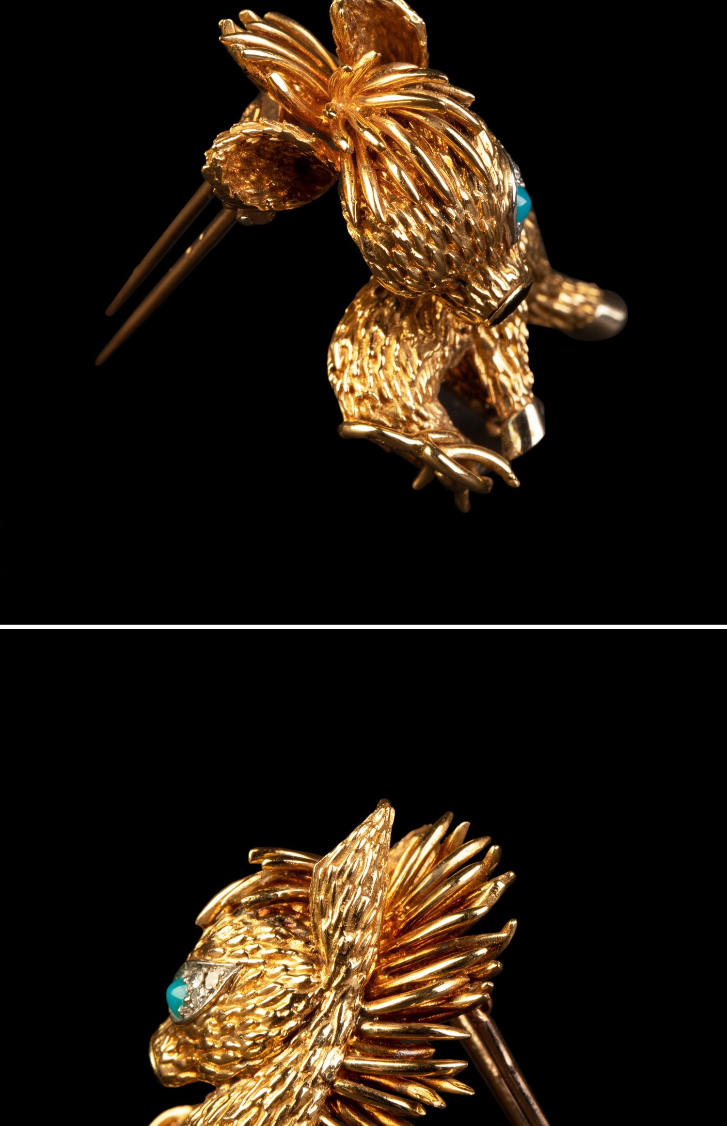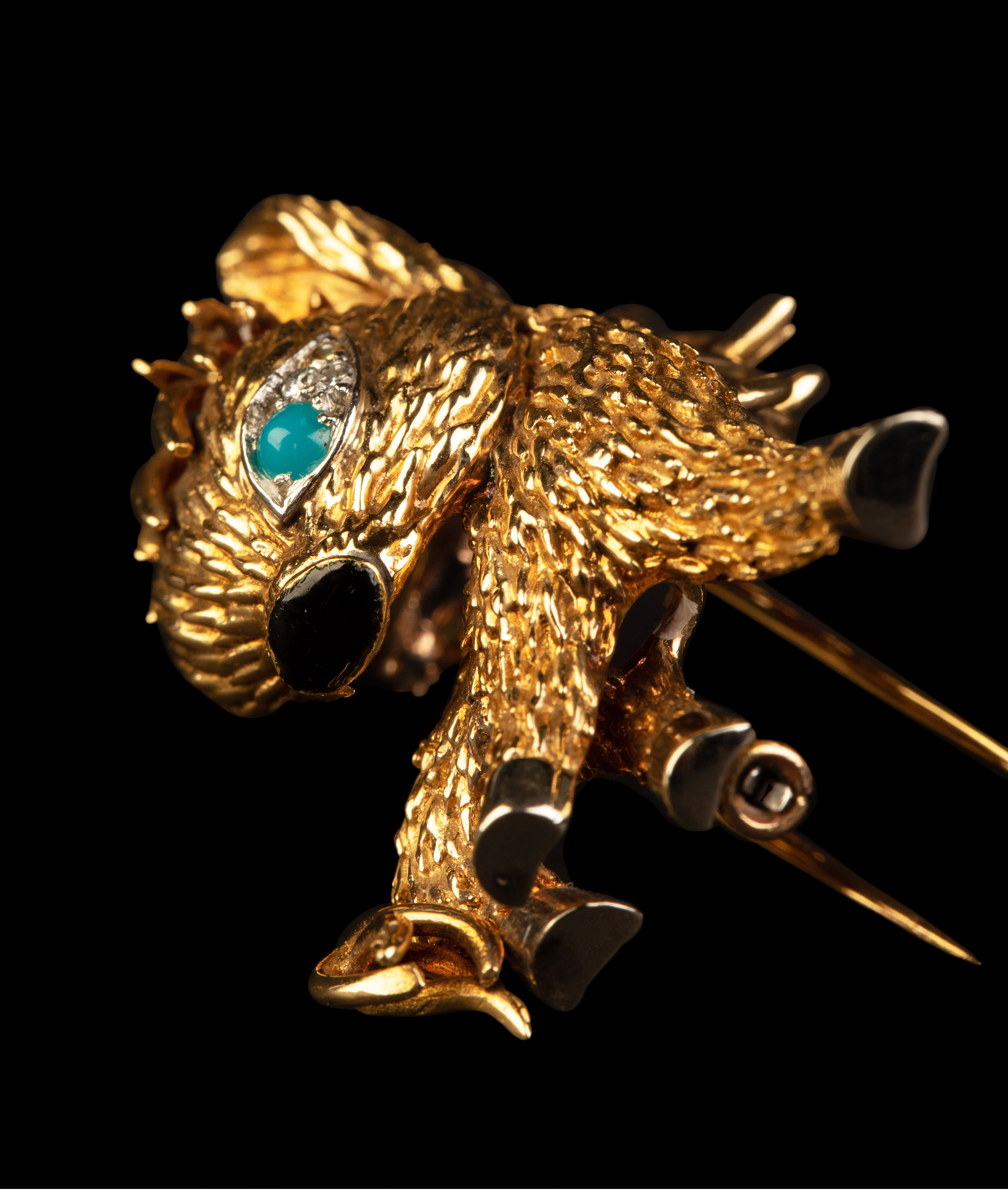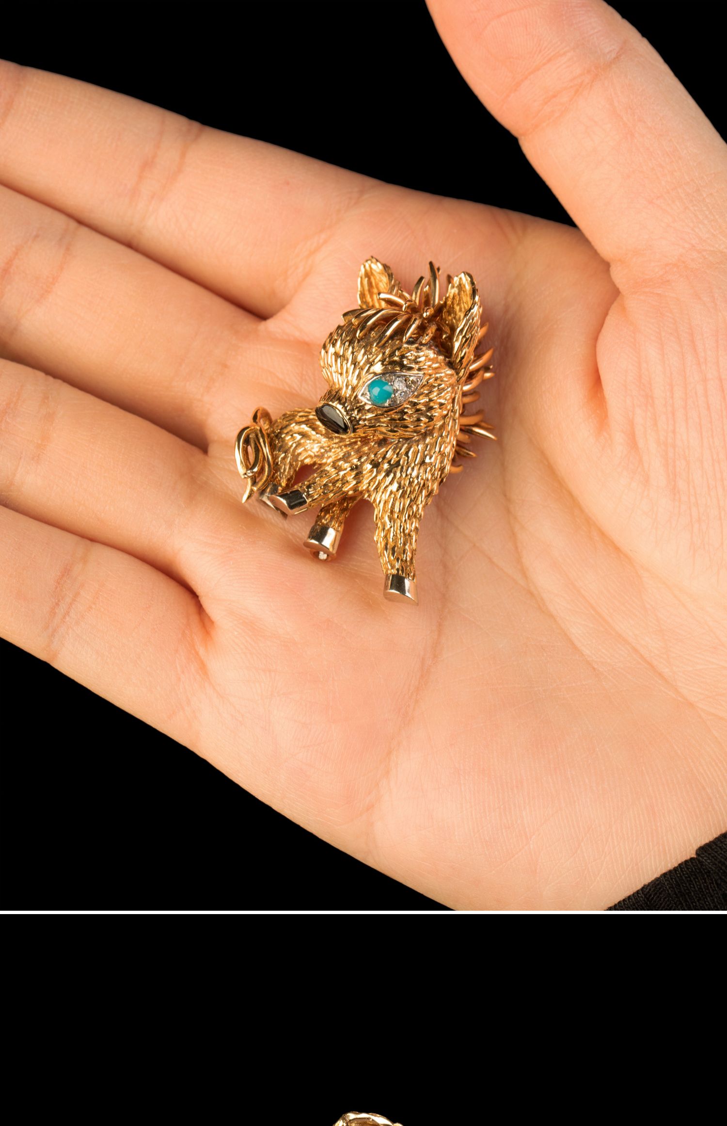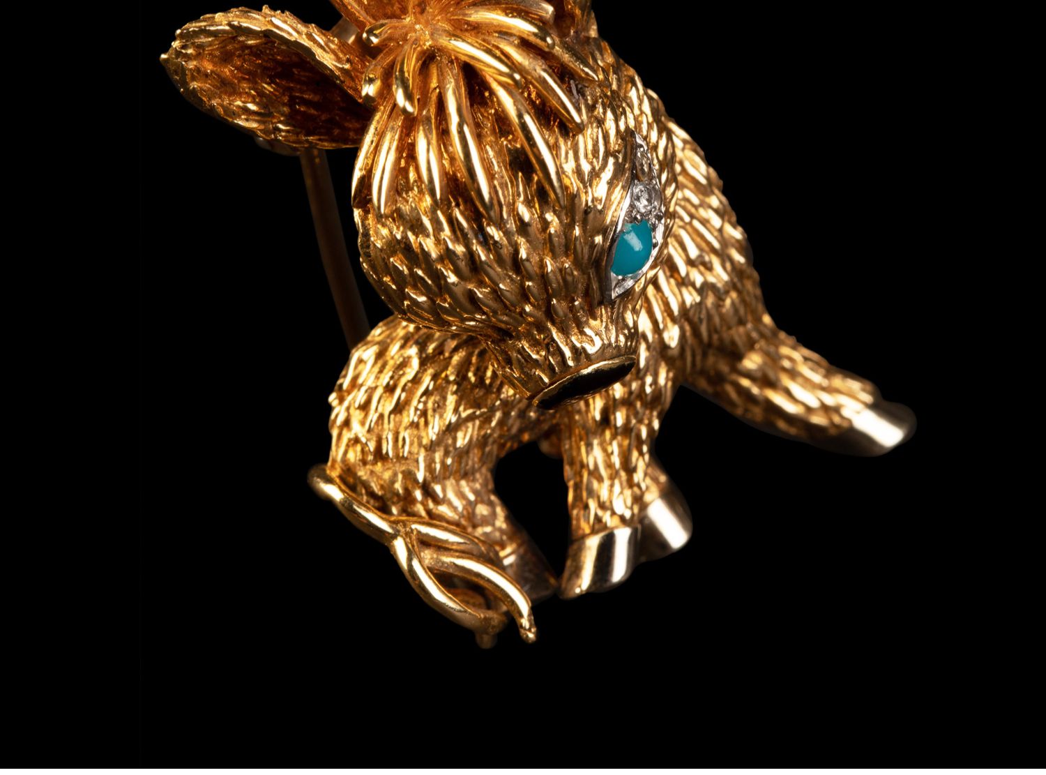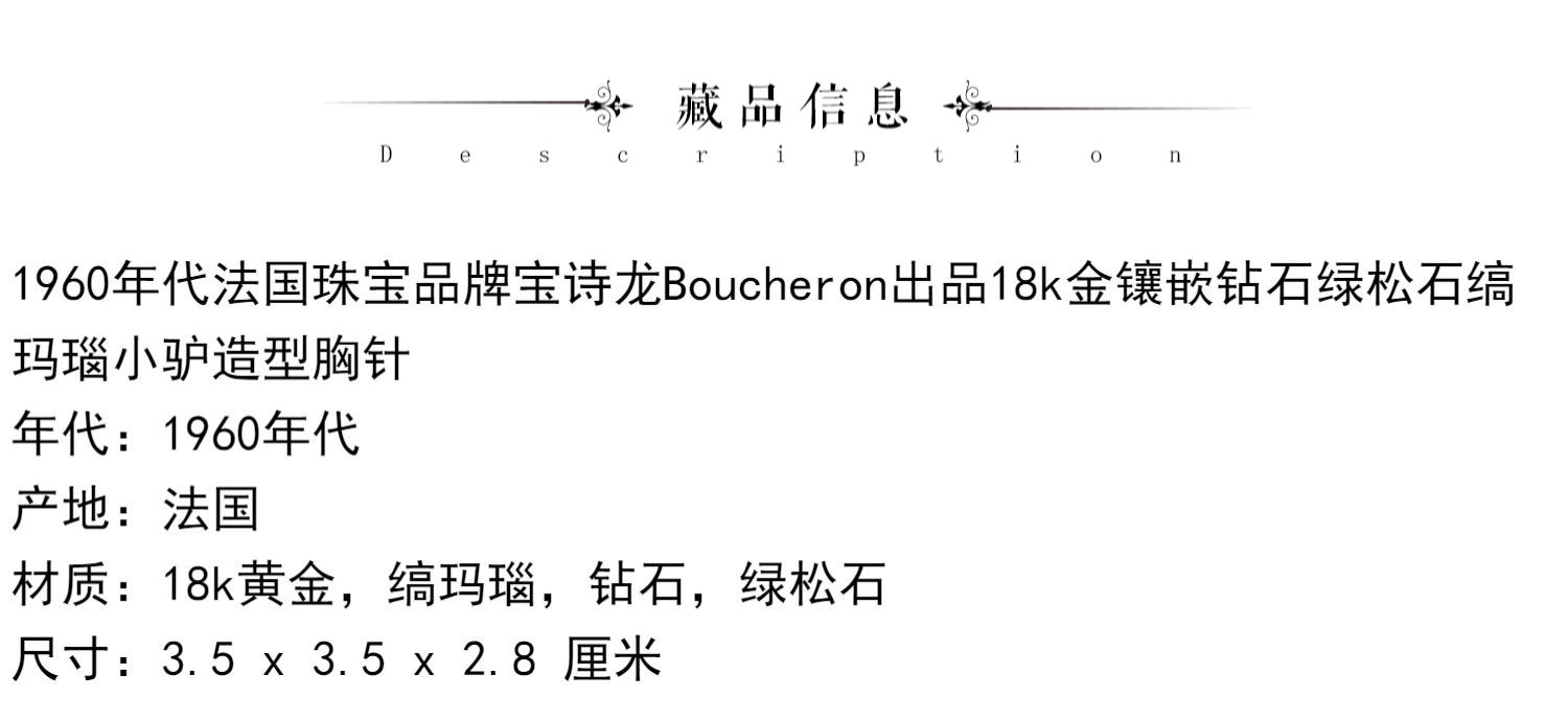 独角鹿西洋古董法国珠宝品牌18K金镶嵌钻石绿松石缟玛瑙小驴胸针