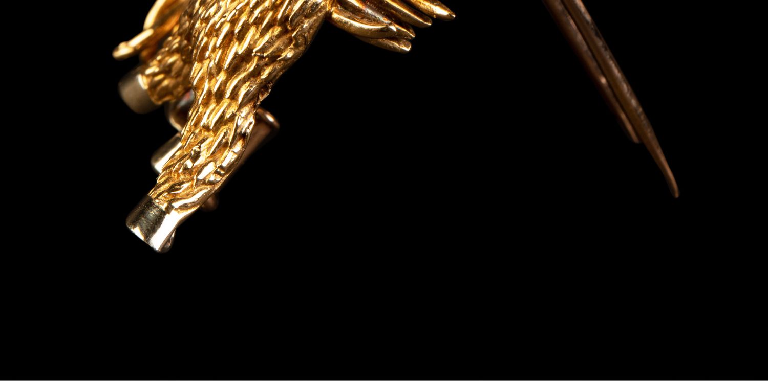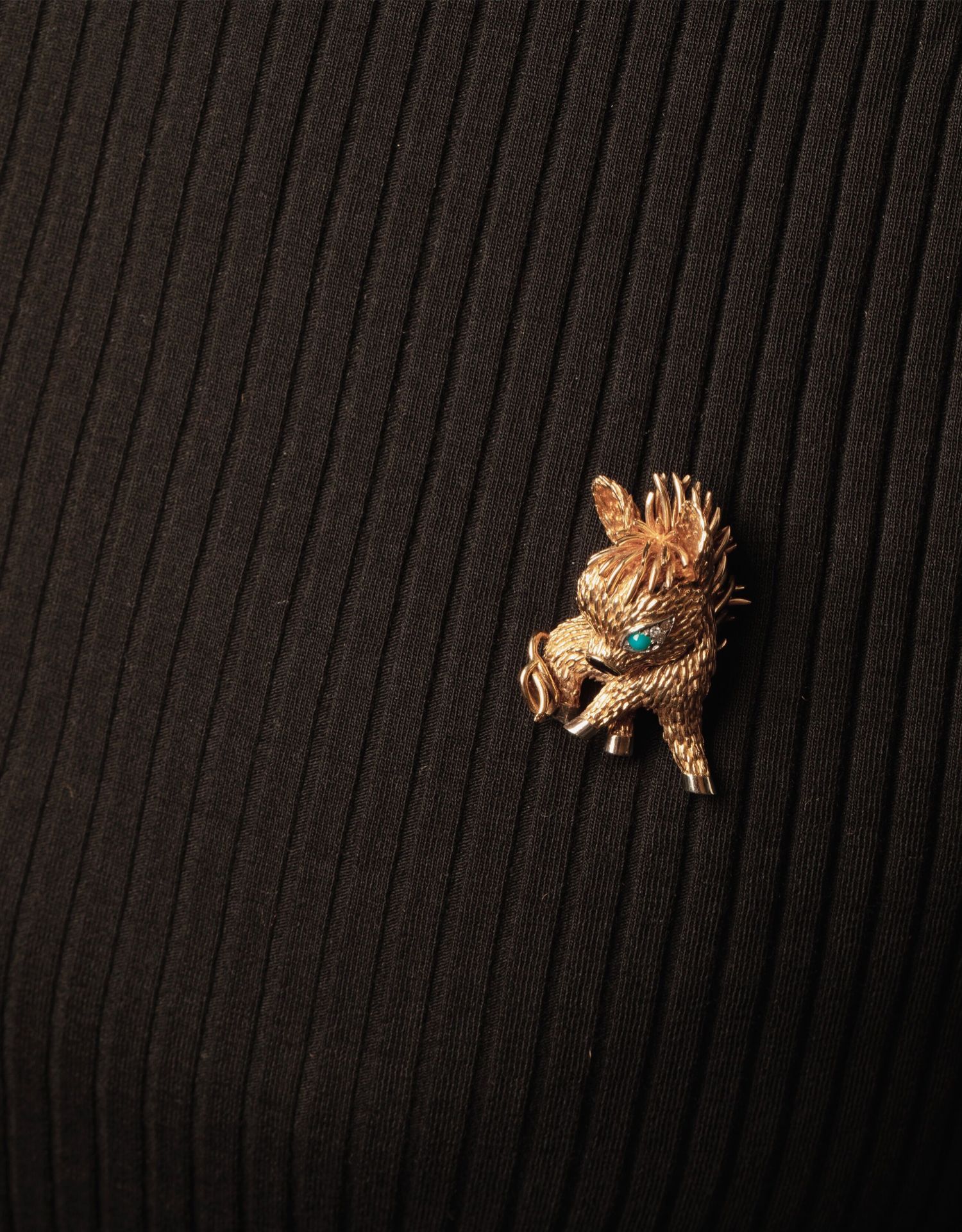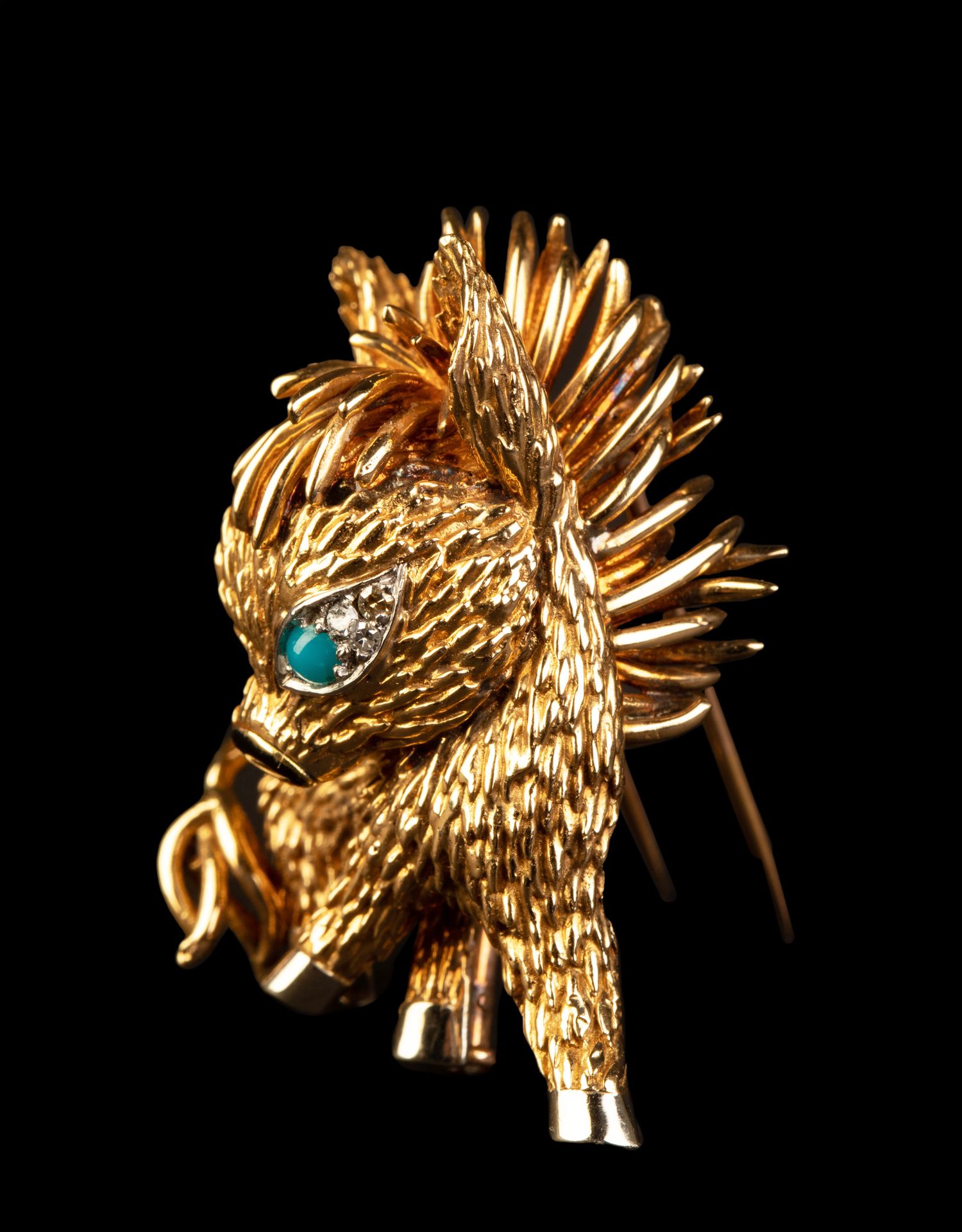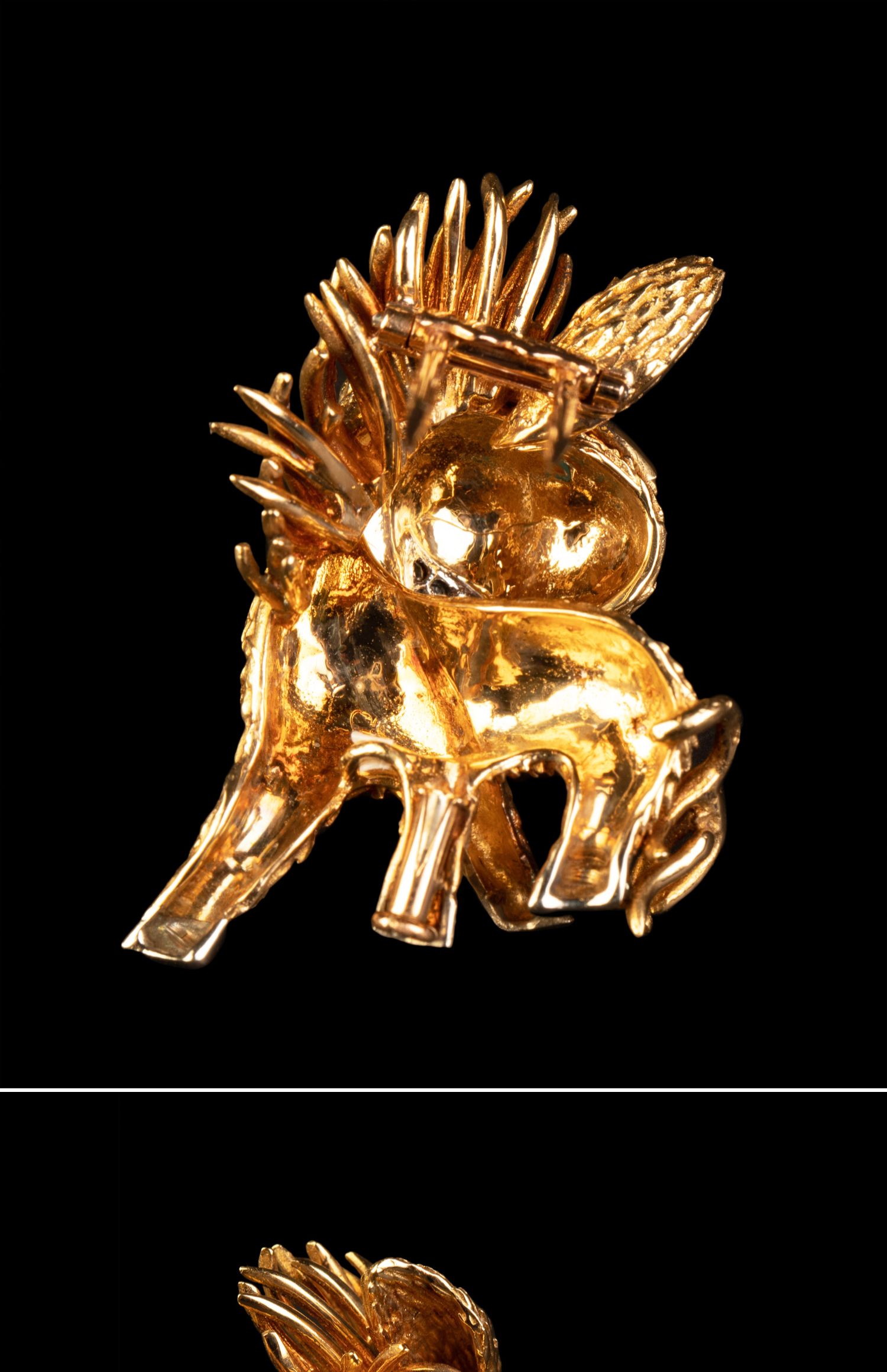独角鹿西洋古董法国珠宝品牌18K金镶嵌钻石绿松石缟玛瑙小驴胸针
