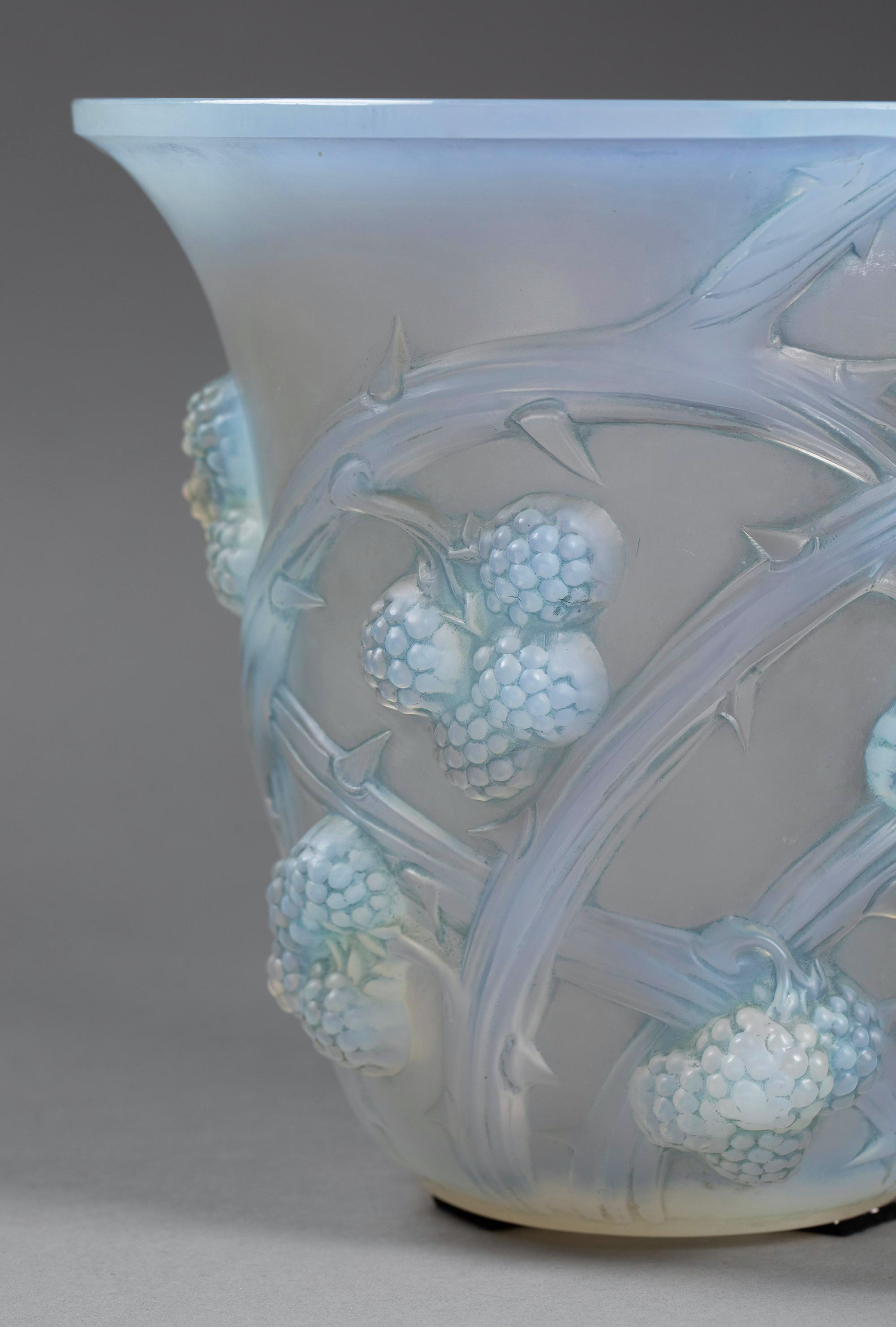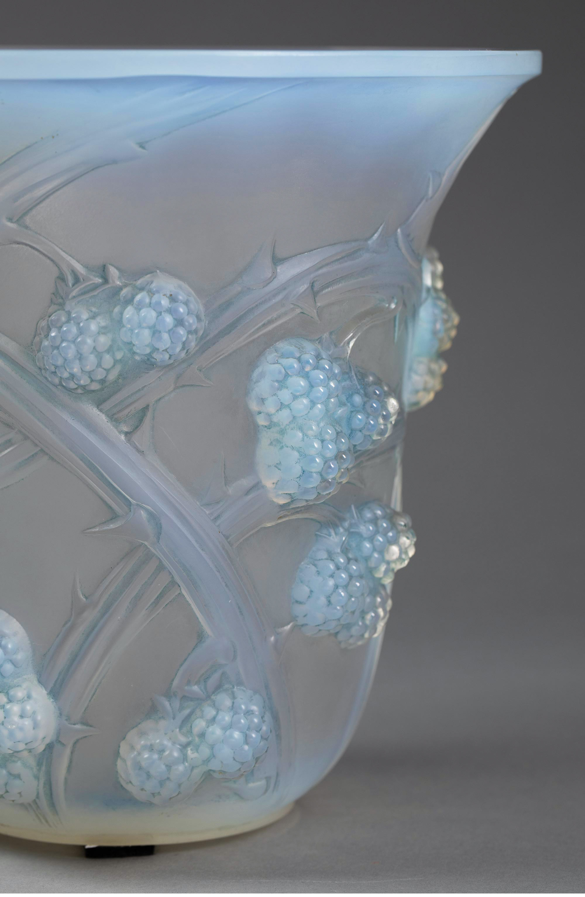 1930年法国水晶工坊设计出品「MURES 黑莓」主题蓝色欧泊水晶花瓶