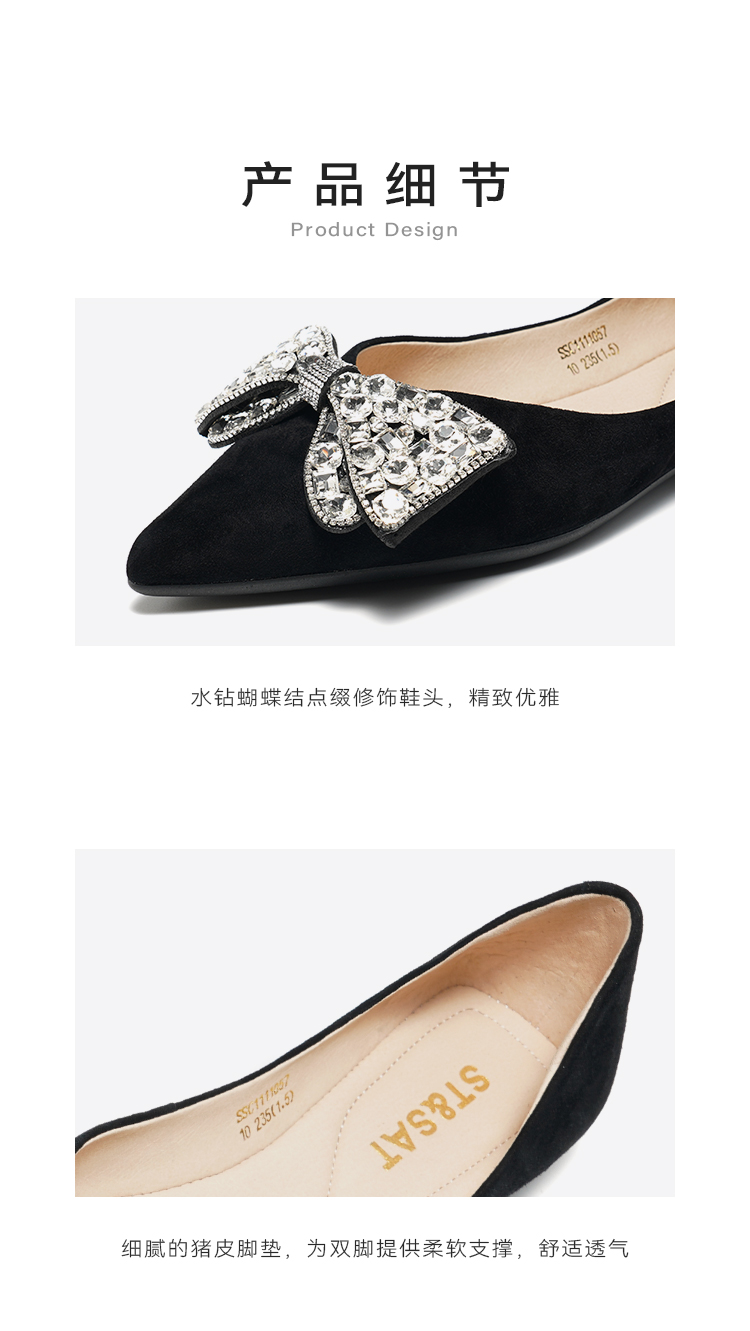 【星空系列】星期六26春新款甜美水钻方头平底单鞋SSE1111211