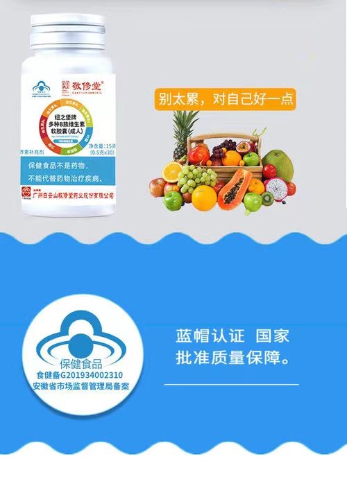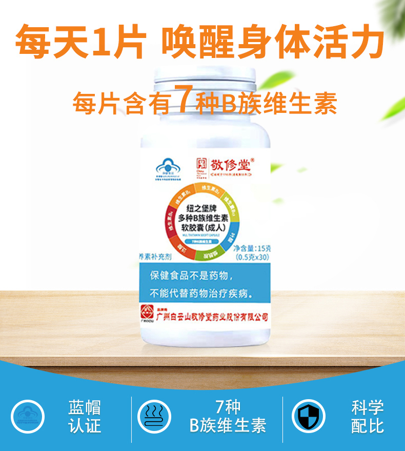 白云山敬修堂多种B族维生素软胶囊蓝帽认证成人男女补充维生素30粒/瓶