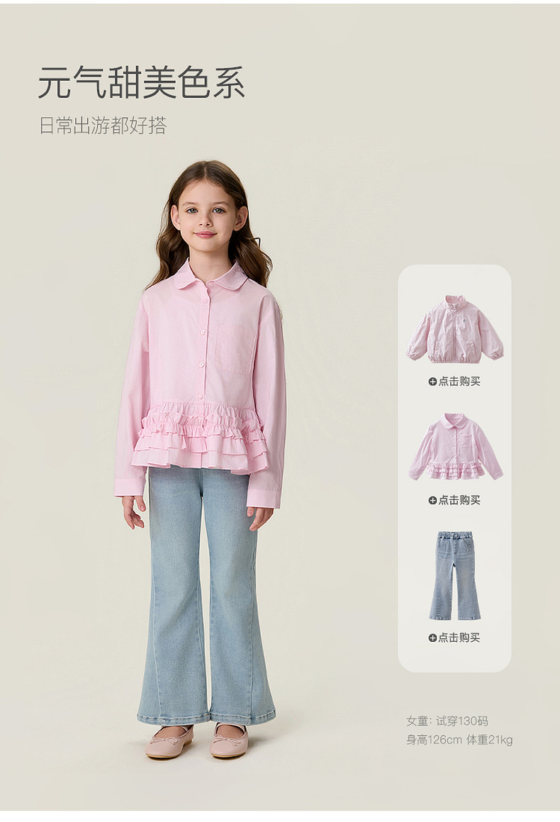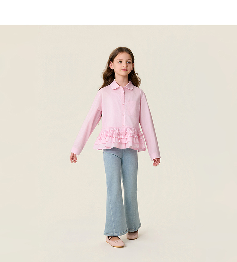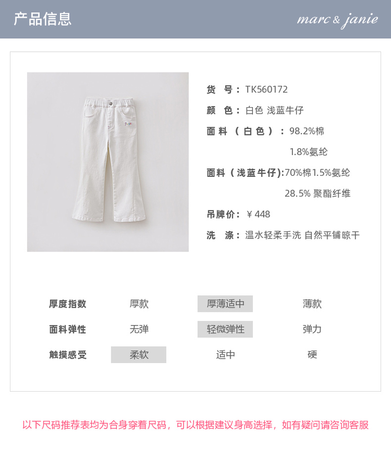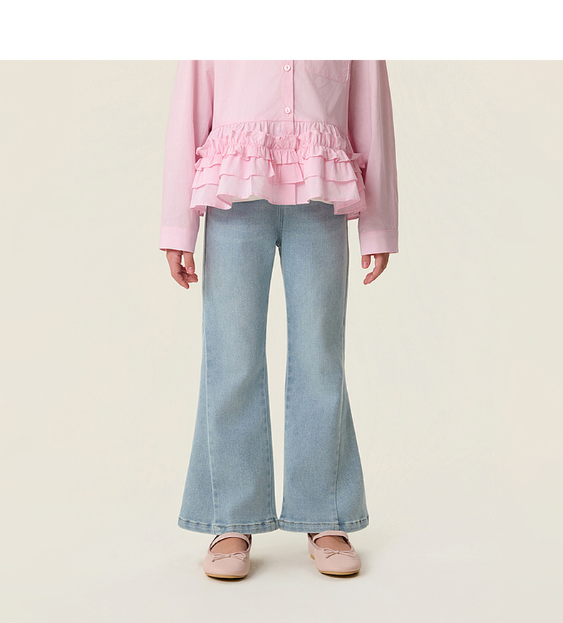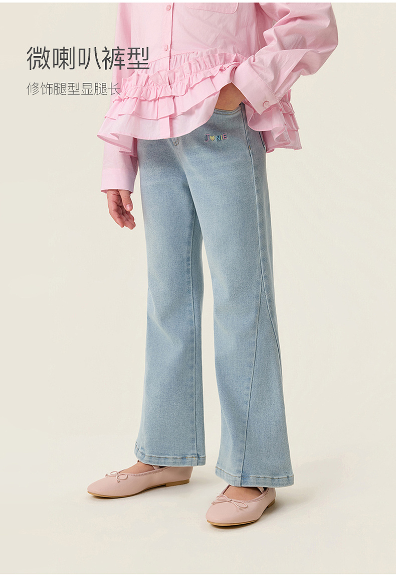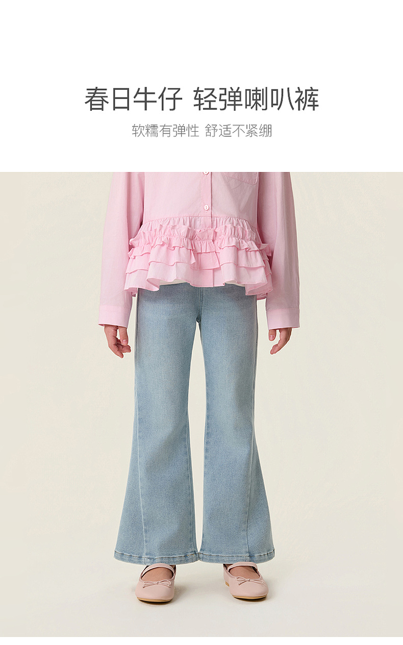 马克珍妮春日牛仔女童轻弹喇叭裤2026年春装新款560172