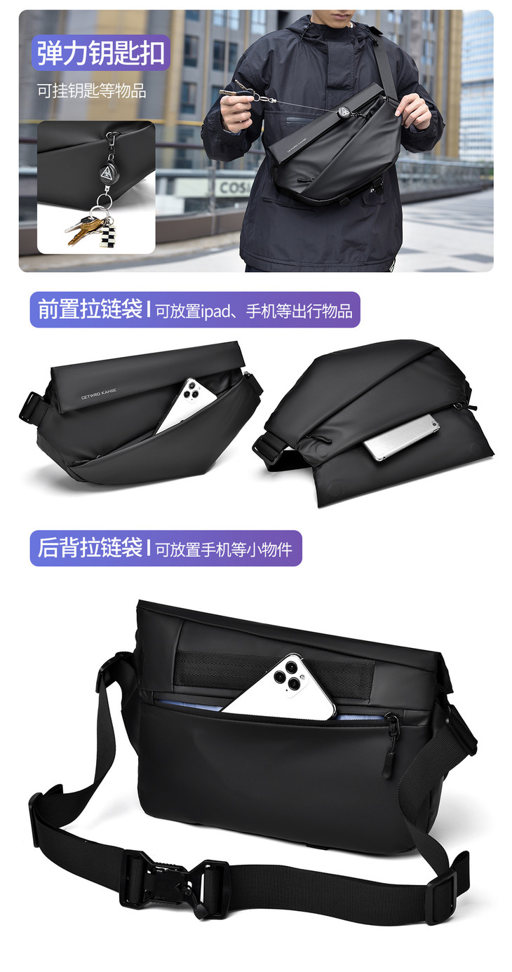 男士斜挎包高级感休闲胸包男简约百搭大容量上班通勤斜挎包