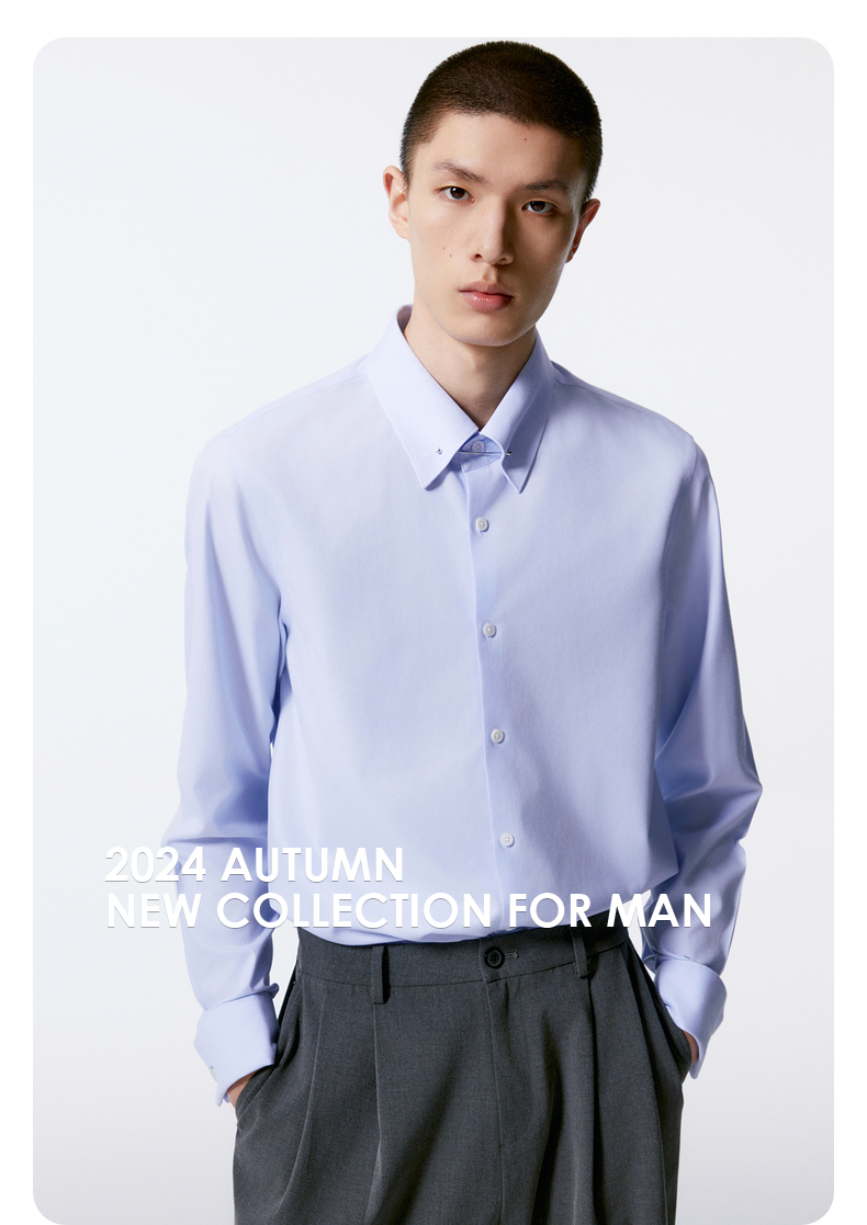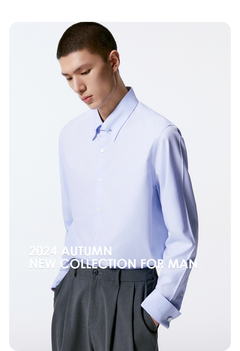 GXG男装 多色基础通勤免烫翻领长袖衬衫 秋季热卖G24X033035